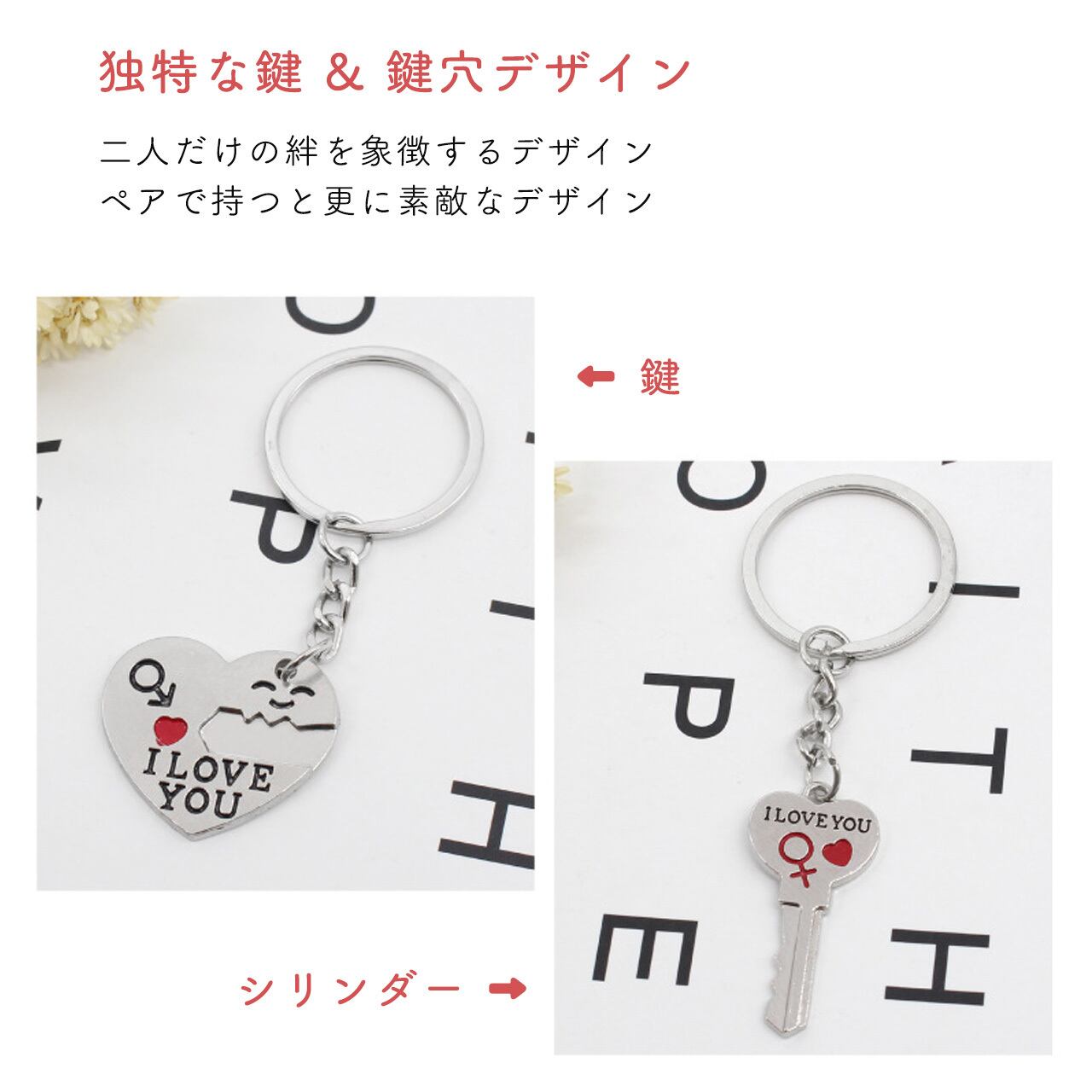 ハートとキーがピッタリ合わさるデザインが「あなたが私の心の鍵」を象徴し、「I LOVE YOU」のメッセージが愛する人への想いを直接伝えます。