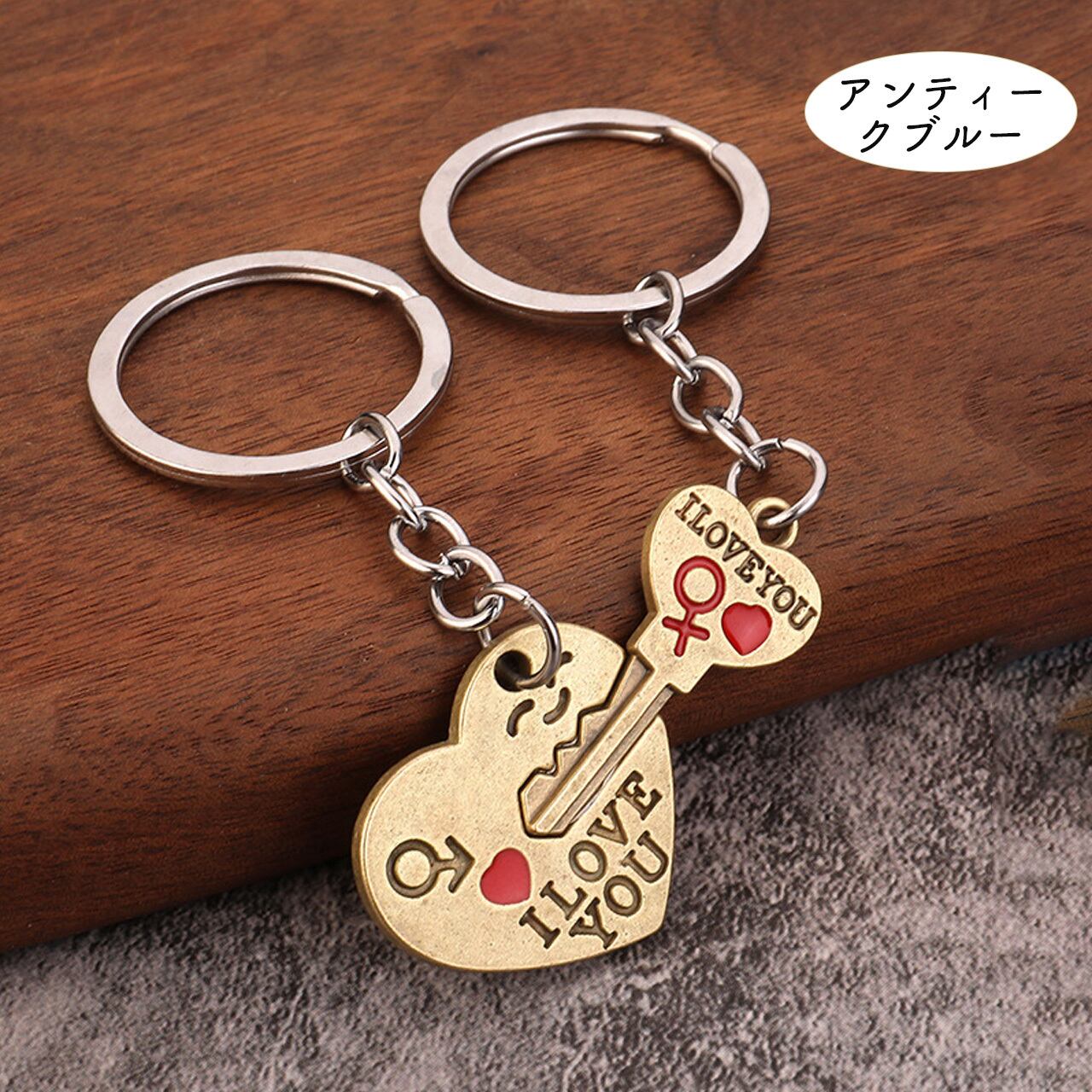 YX06 .ハート & キー ペアキーホルダー 『I LOVE YOU』 カップルギフト キーチャーム
