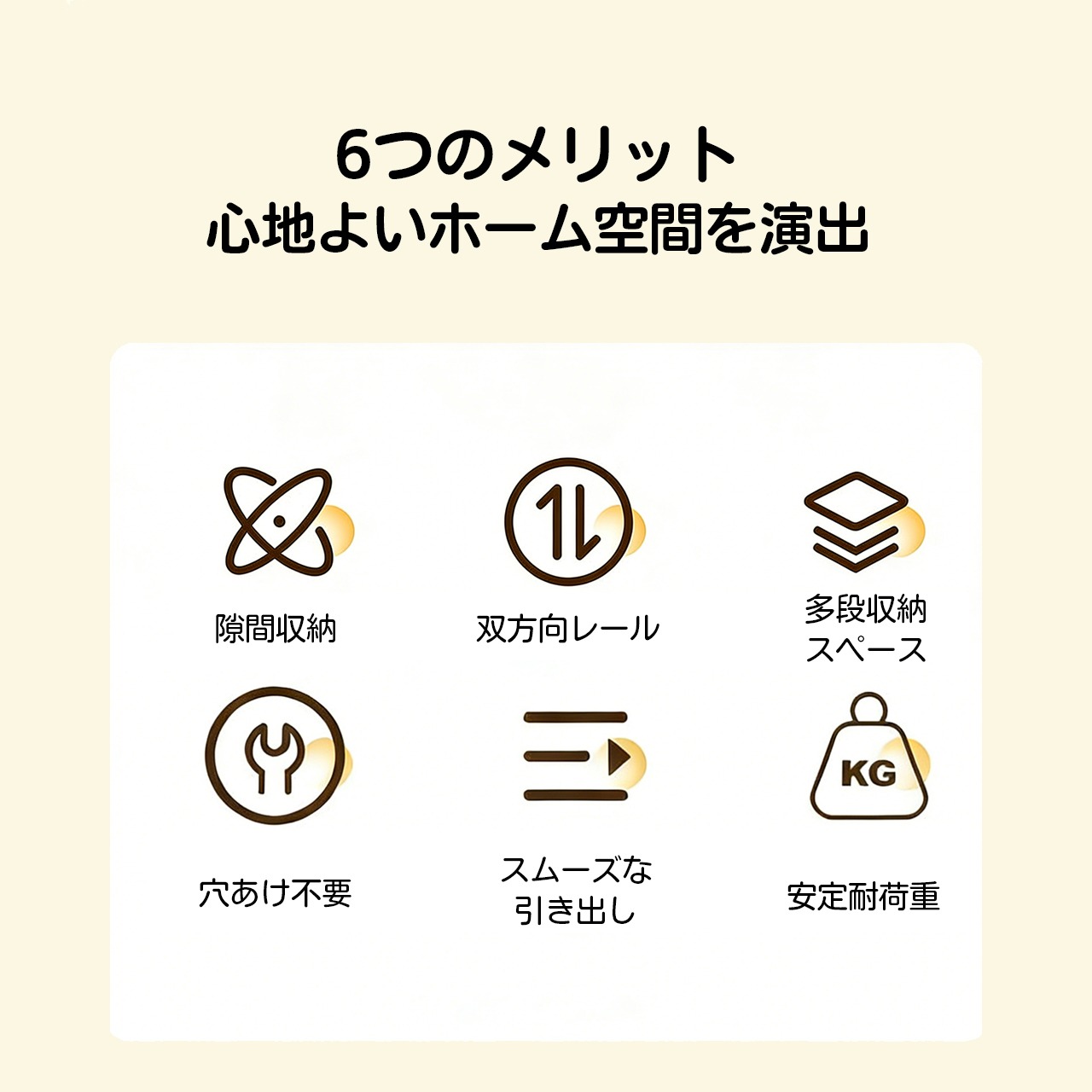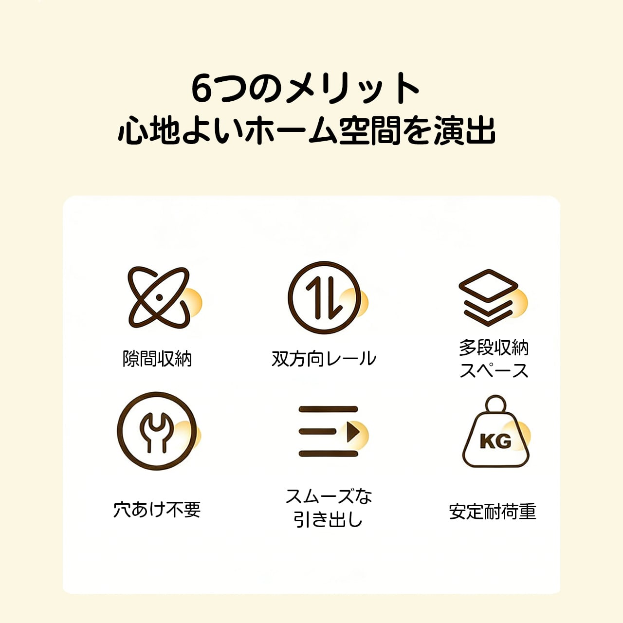 ドライバー不要で簡単に取り付けられる、便利な隙間収納ラック。