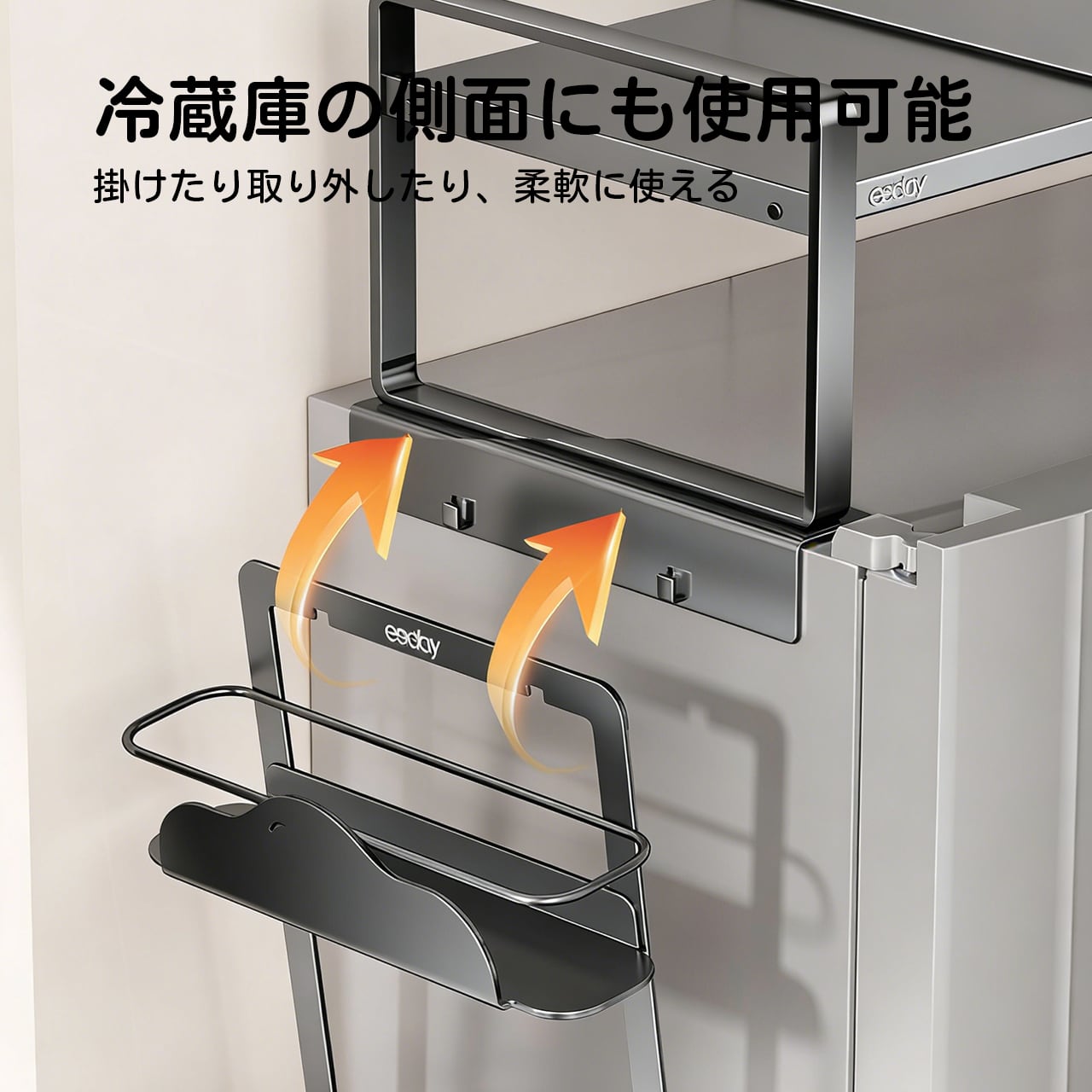 J10 .冷蔵庫上部収納ラック サイド収納ラック 磁石吸着式 キッチン用 家庭用 片開き・両開き冷蔵庫対応 ストレージラック