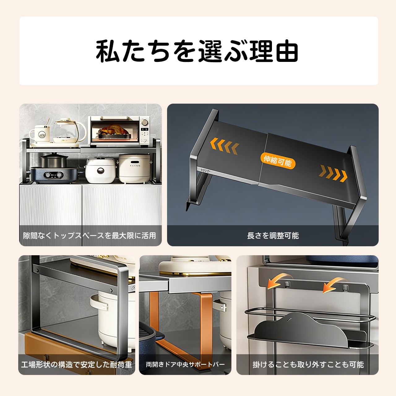 ① 耐荷重の注意各棚の耐荷重を超えないように、重い食器を置かないでください。過剰な荷重はラックの変形や破損の原因となります。