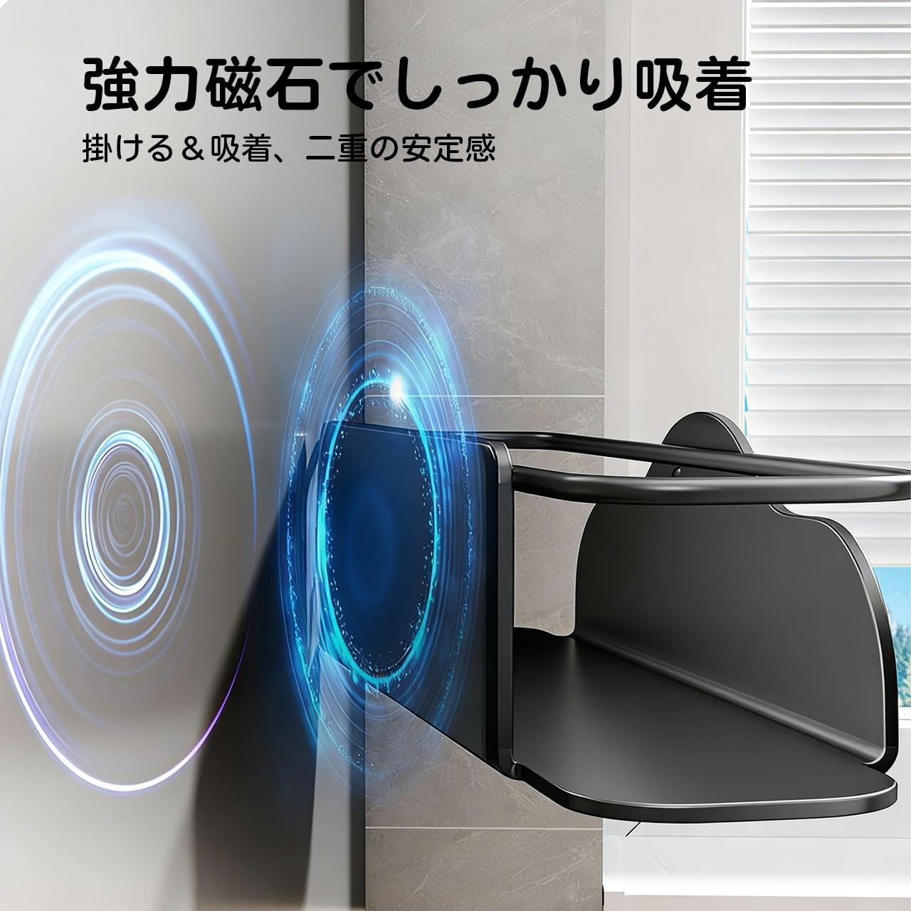 穴あけ不要で、どんな場所にも磁石でしっかり固定。取り付けも取り外しも簡単です。賃貸住宅や引っ越しが多い方にも最適。