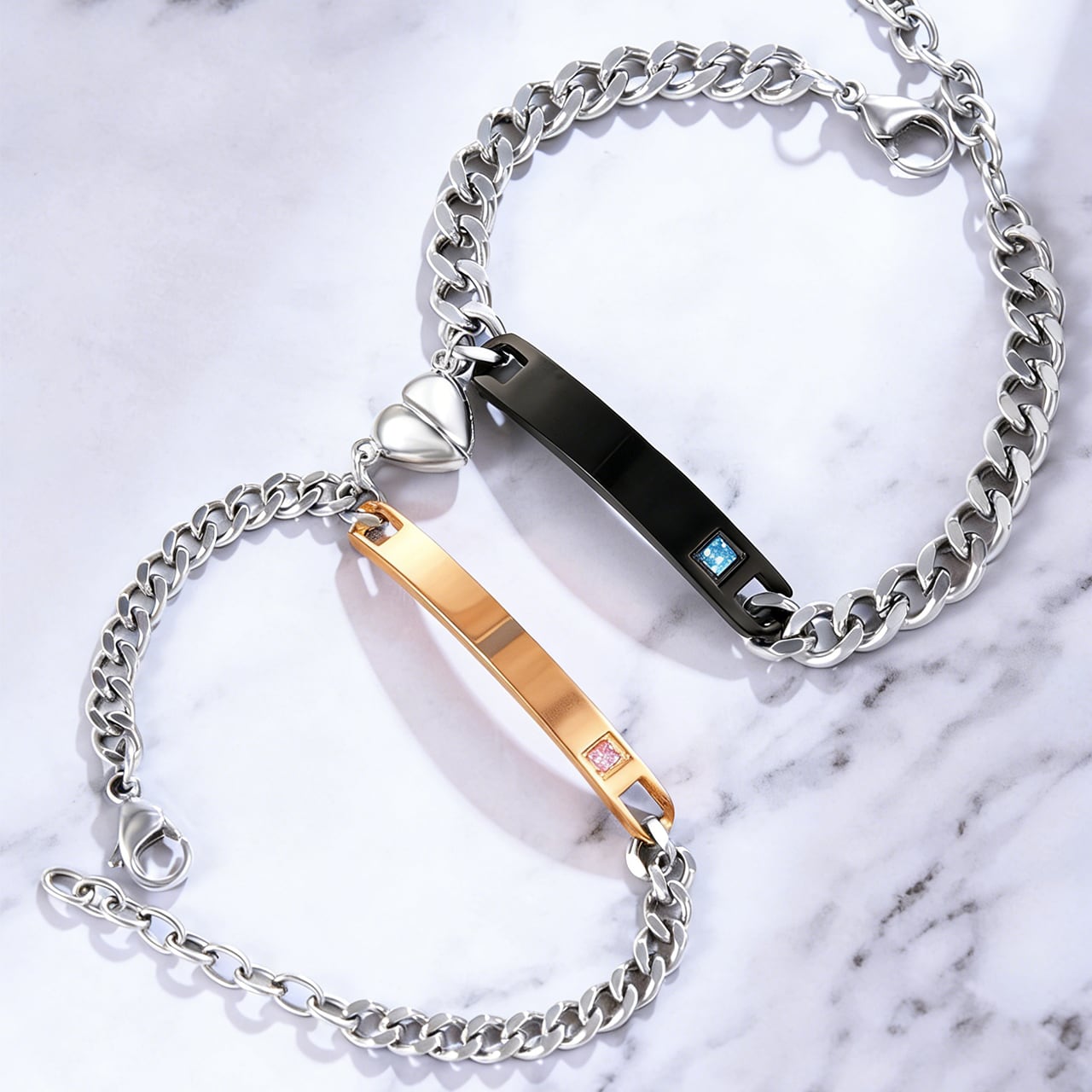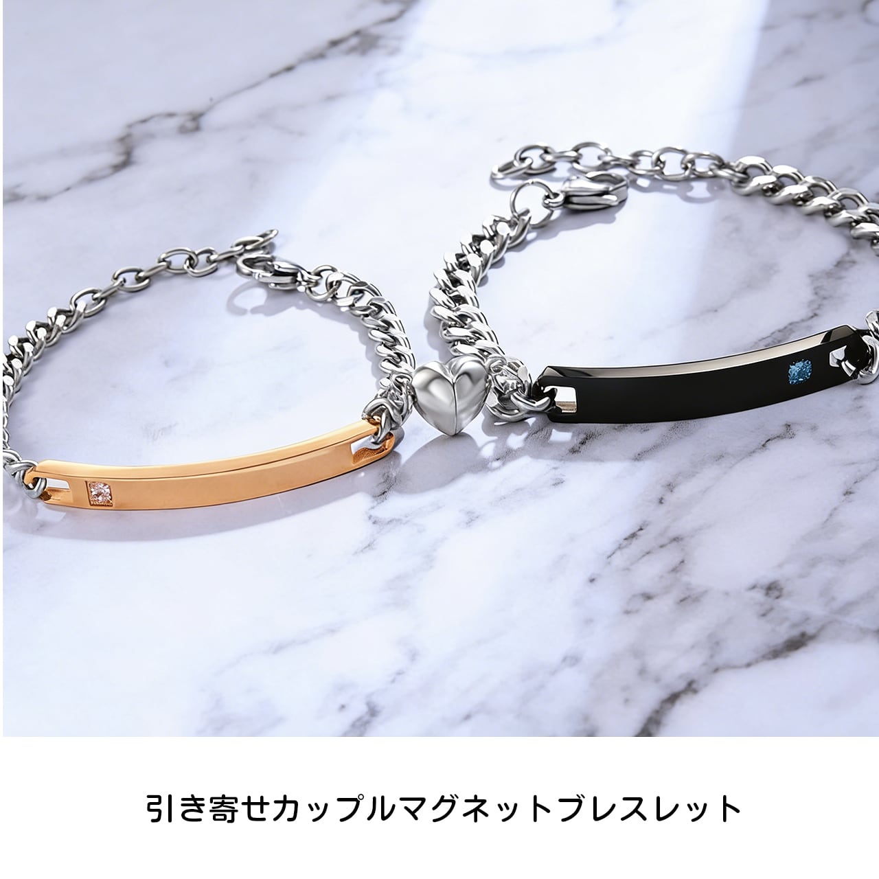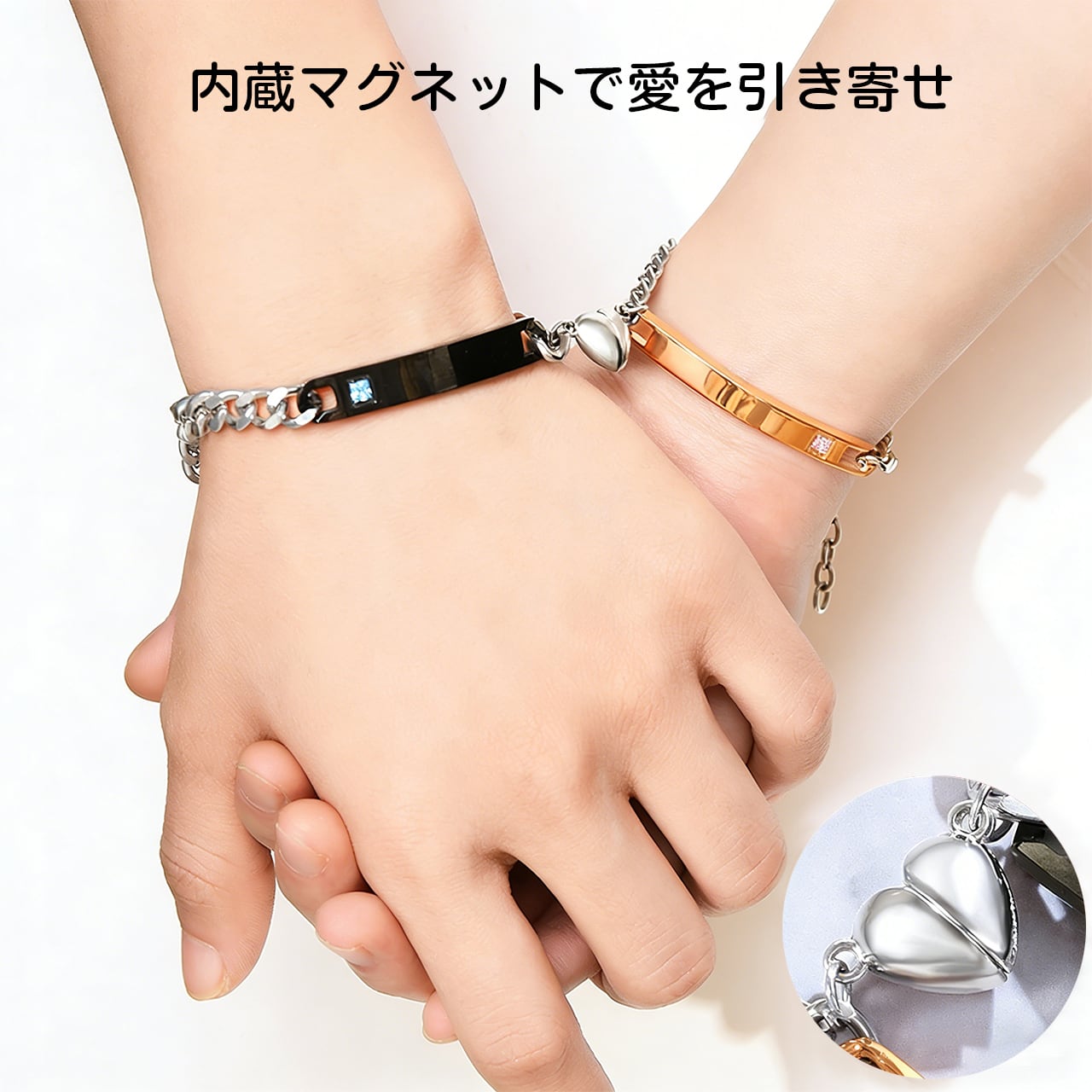Z03 .カップルハートシンプルブレスレット|名入れ対応・マグネット式・長さ調節可能