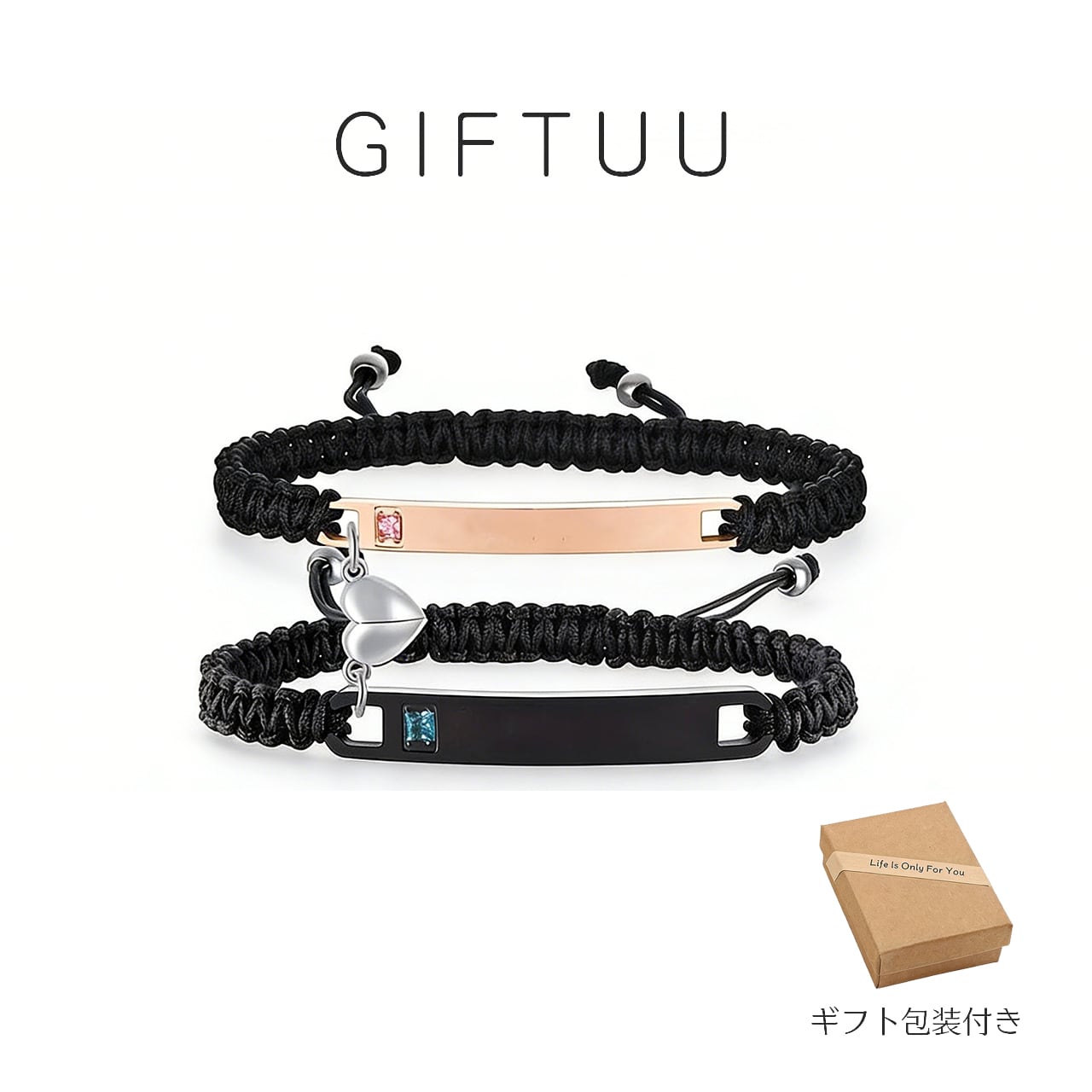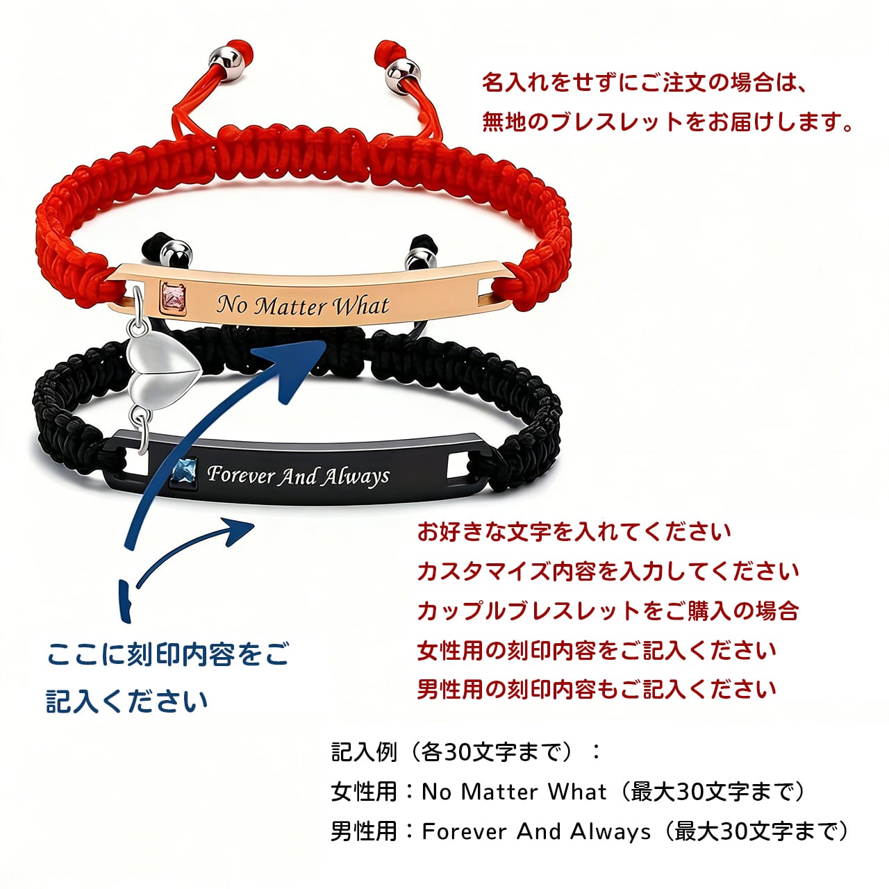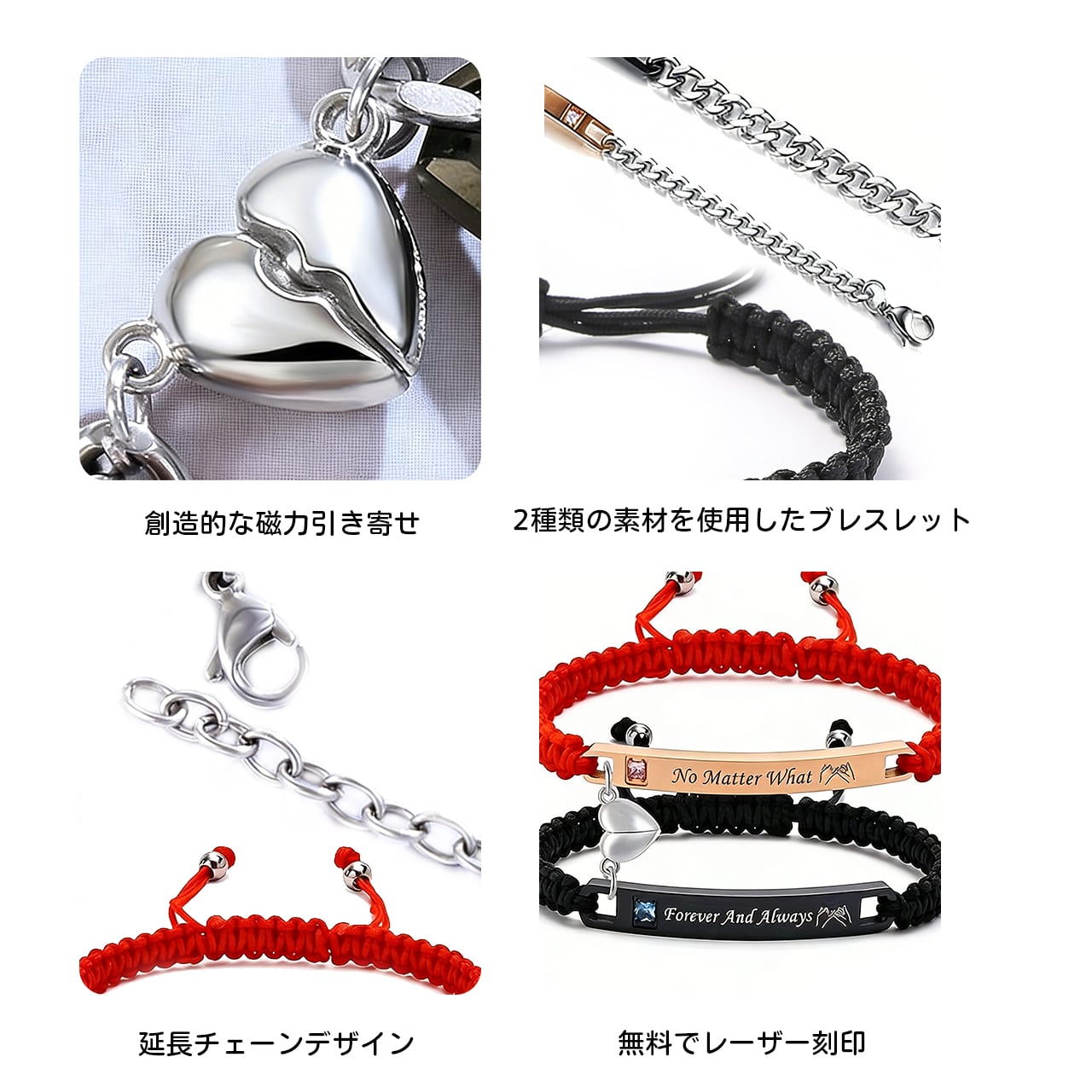 Z03 .カップルハートシンプルブレスレット|名入れ対応・マグネット式・長さ調節可能