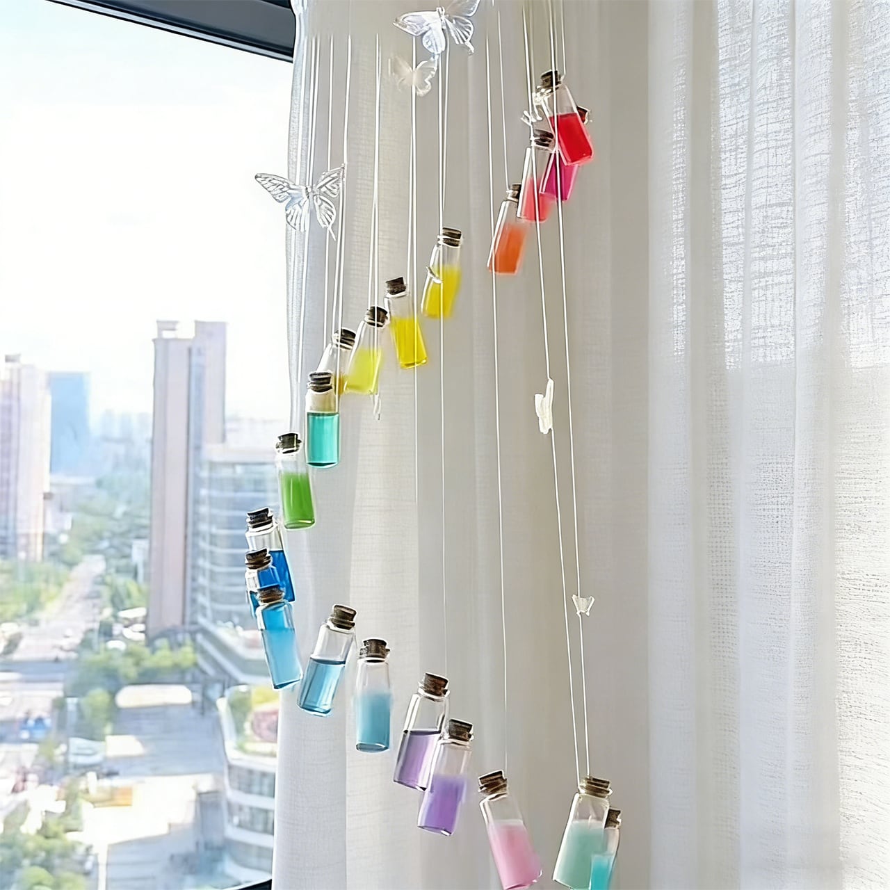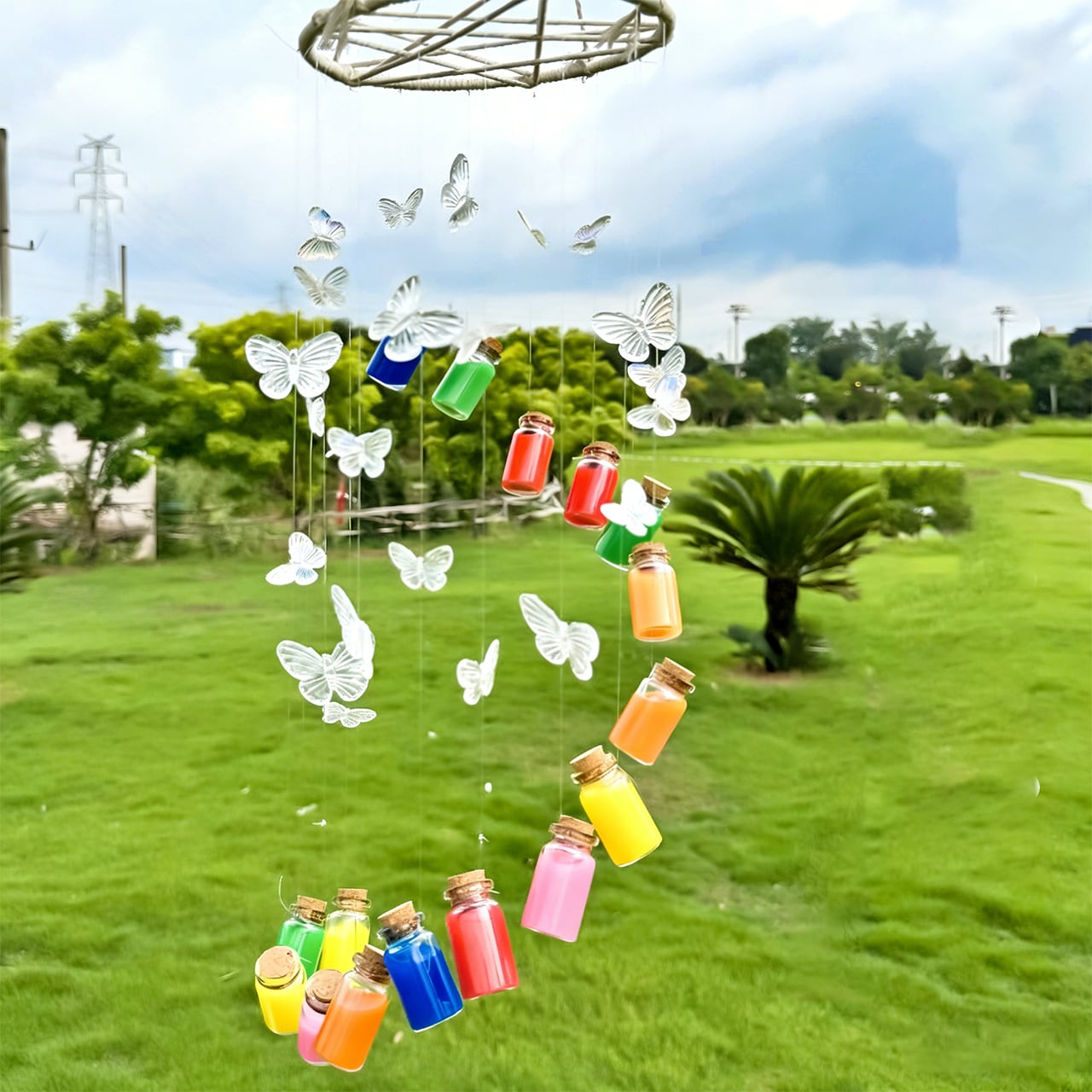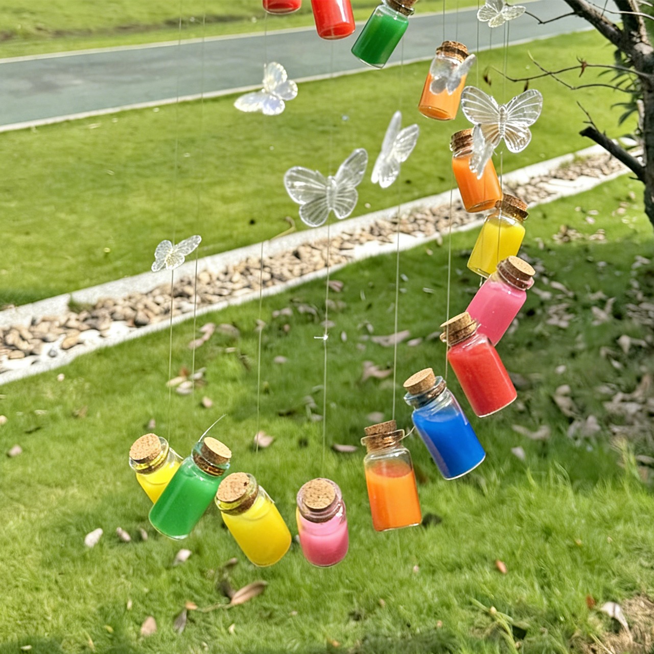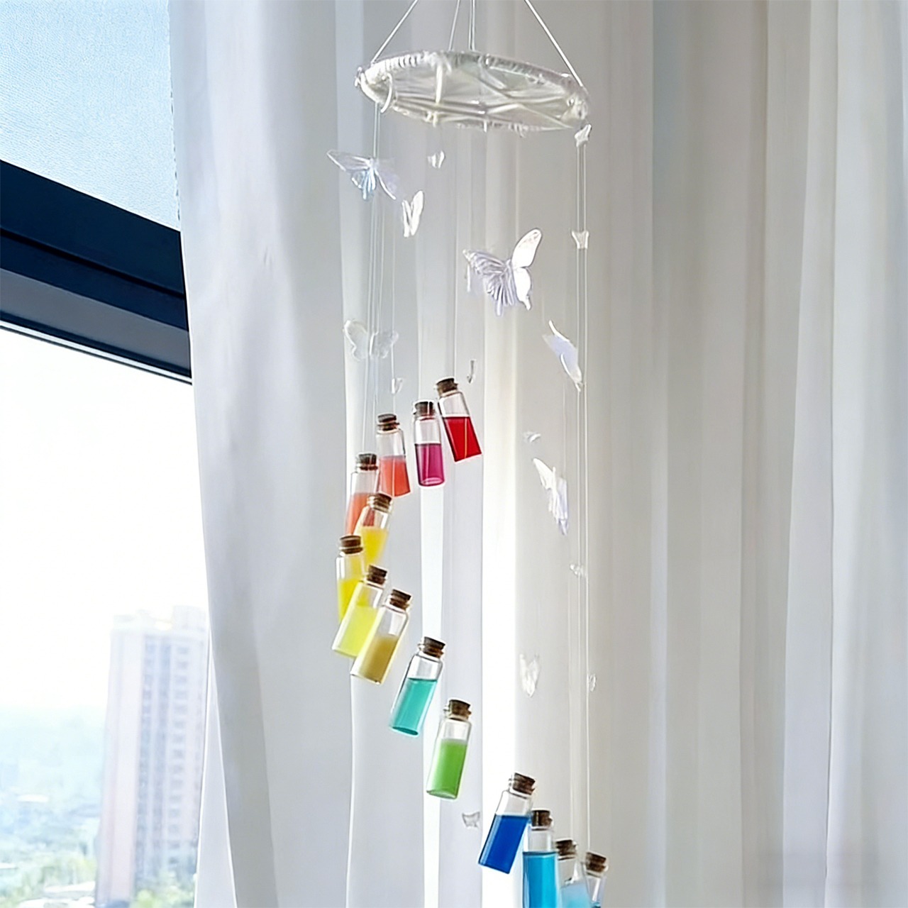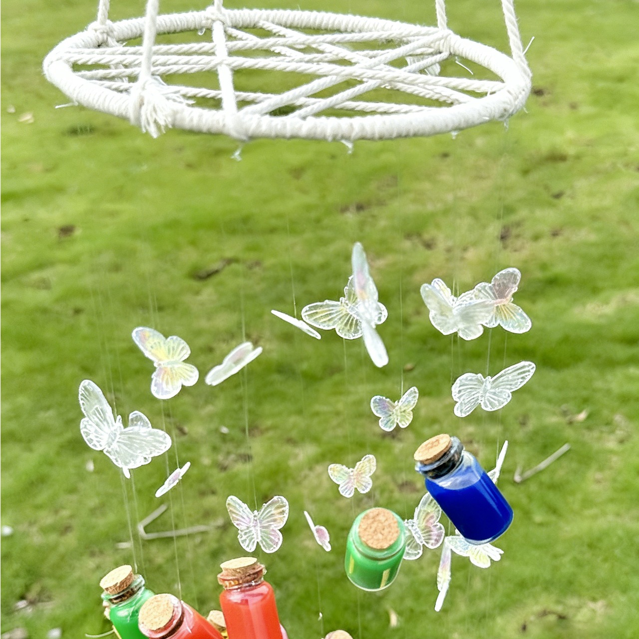 P11 .蝶の虹風鈴 手作りDIY素材キット ボトルペンダント 友達や彼へのプレゼント、車の飾り、インテリア用