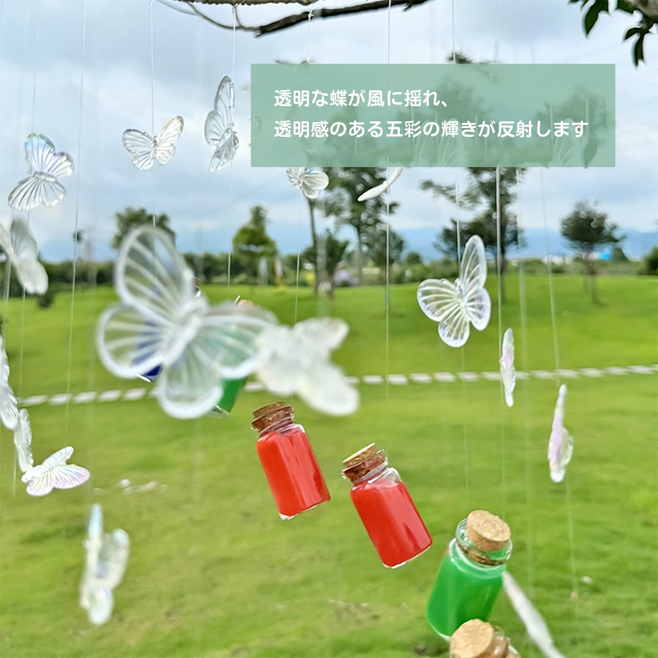 ✅ 多用途のデコレーション:風鈴としてだけでなく、車の飾り、部屋のインテリア、お部屋の窓辺やバルコニーにもぴったり。どんな場所でも華やかな雰囲気を演出します。