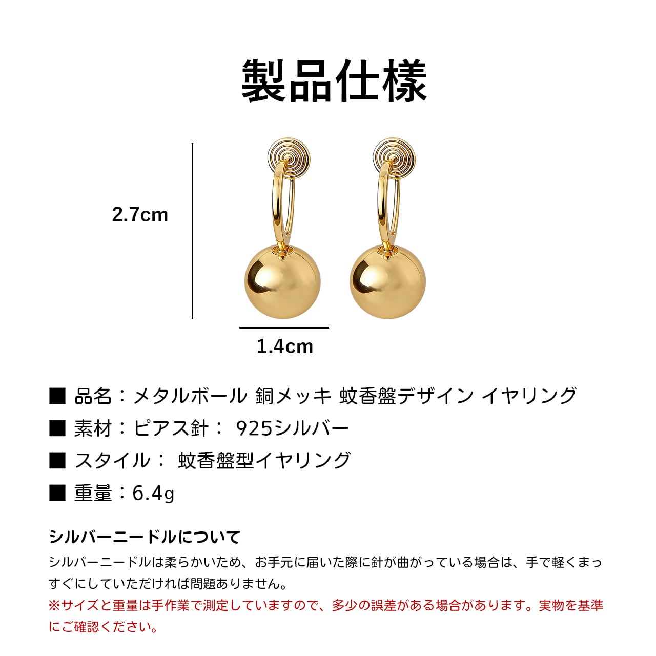 メタルボール ノーピアス 銅メッキ 蚊香盤デザイン イヤリング