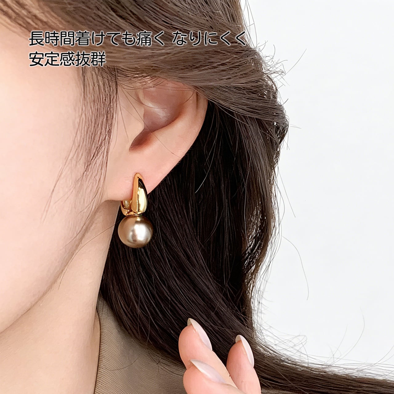 長時間の着用でも耳が痛くならない無痛イヤーカフ設計。耳の形にフィットするので、外れにくく、安定感があります。イヤリングの重量を分散させることで、耳への負担を最小限に抑え、快適に使用できます。