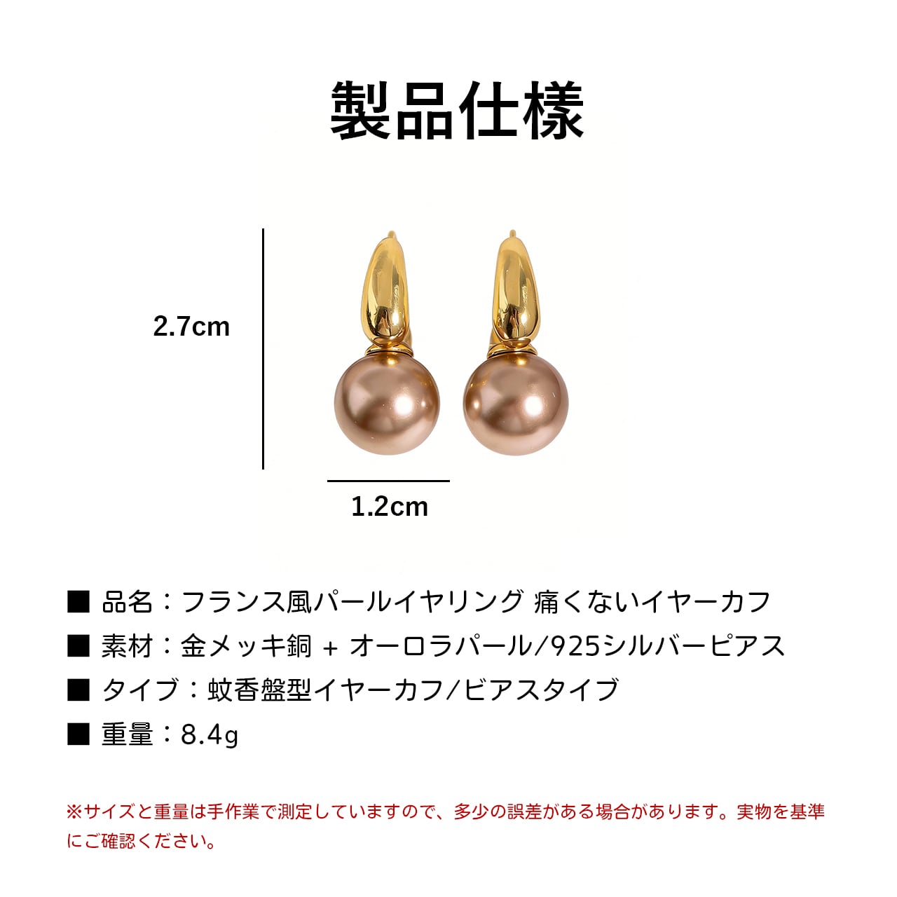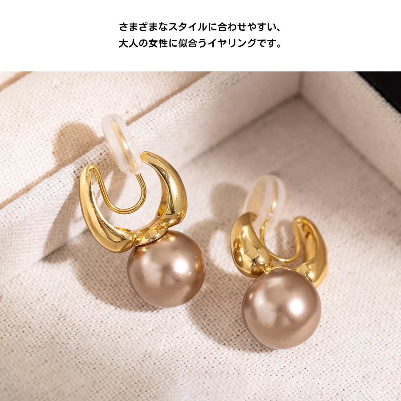 フランスのエレガンスと現代的なデザインを融合させた、洗練されたパールイヤリング。精緻なパールとゴールドの質感が調和し、あなたの魅力を引き立てます。無痛イヤーカフデザインで、快適に長時間着用できます。軽やかな高級感を感じさせるアイテムです。