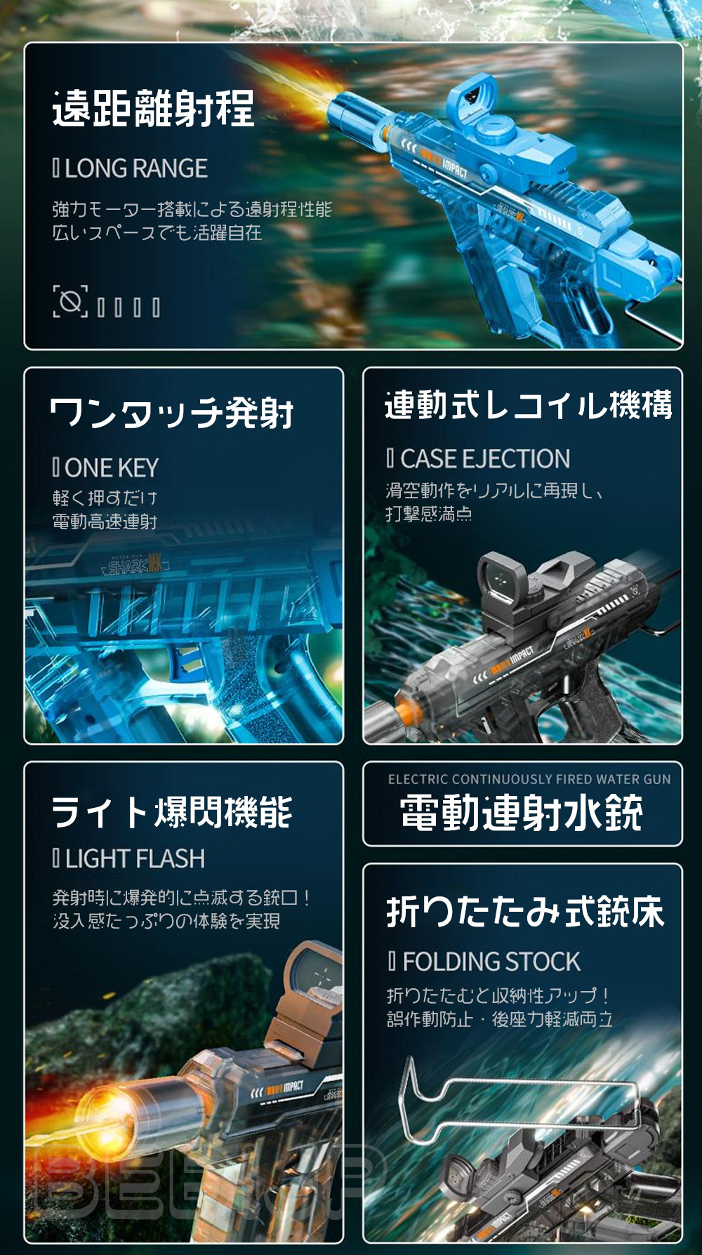 MJ11 .爆閃ライト付き電動水銃おもちゃ、大容量リロード連射、火光、子供用フルオート水銃