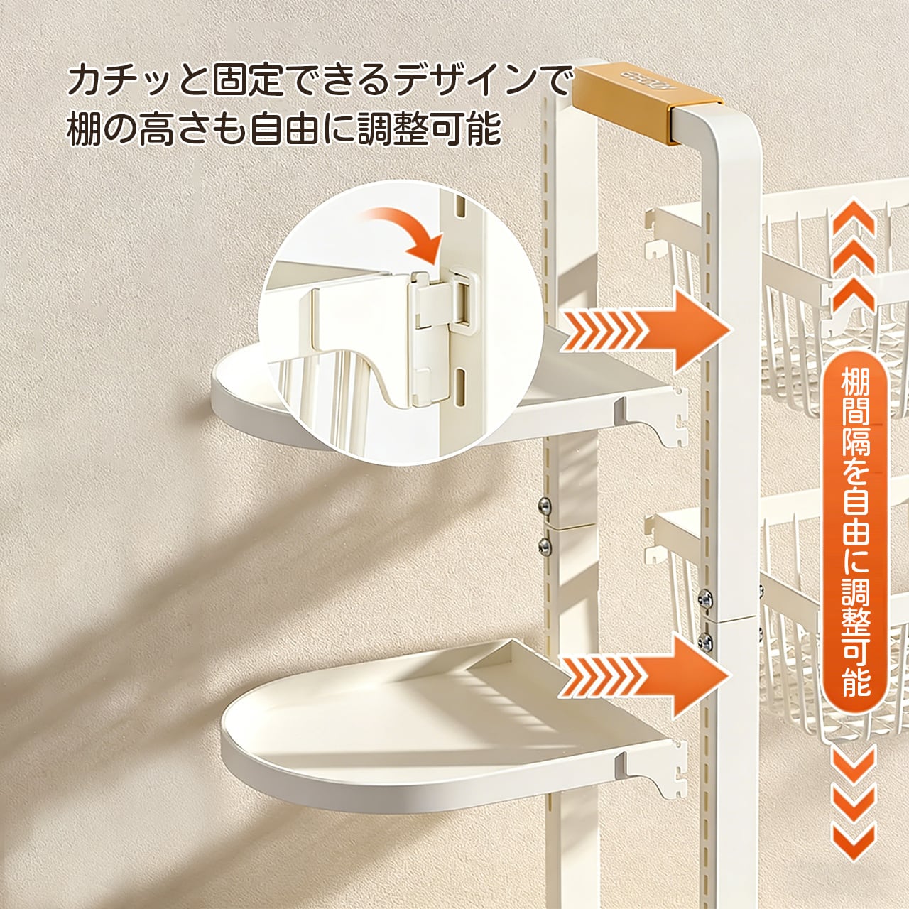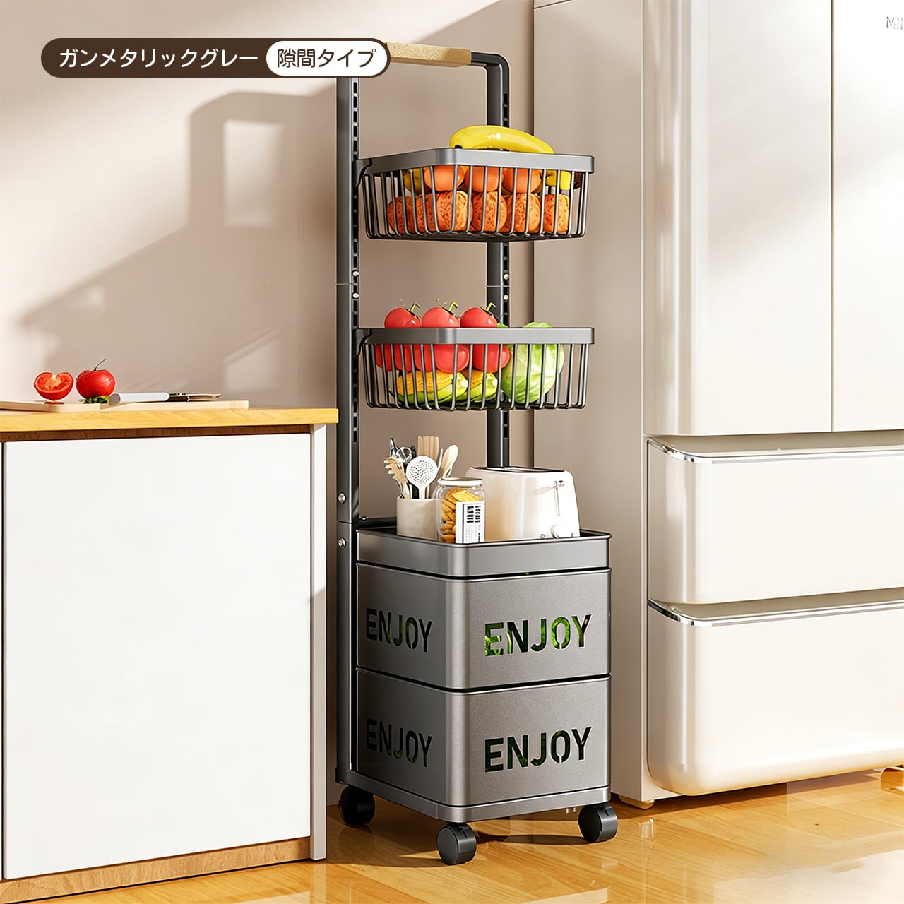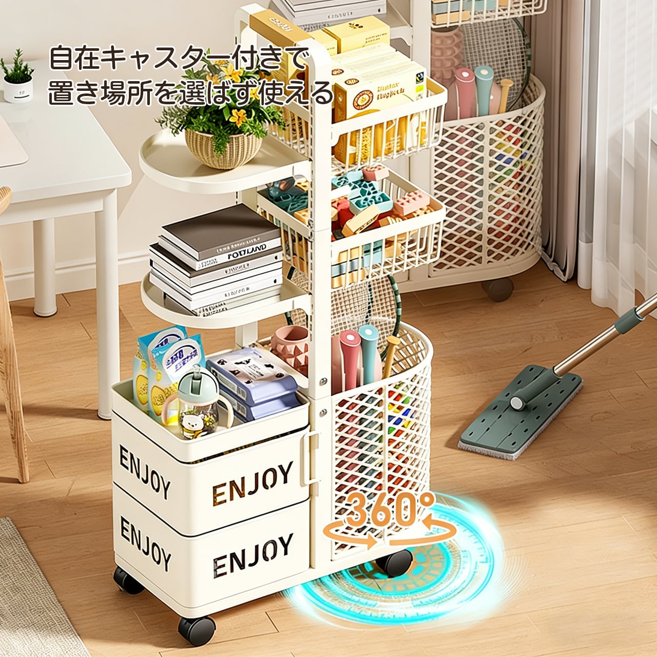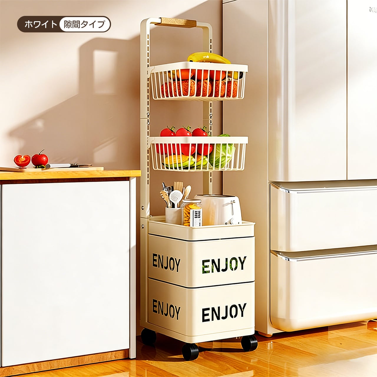 J16 .多機能キッチン収納ラック 家庭用 大容量 多段 絵本やお菓子も収納可能 高さ調整可能 キャスター付きワゴン