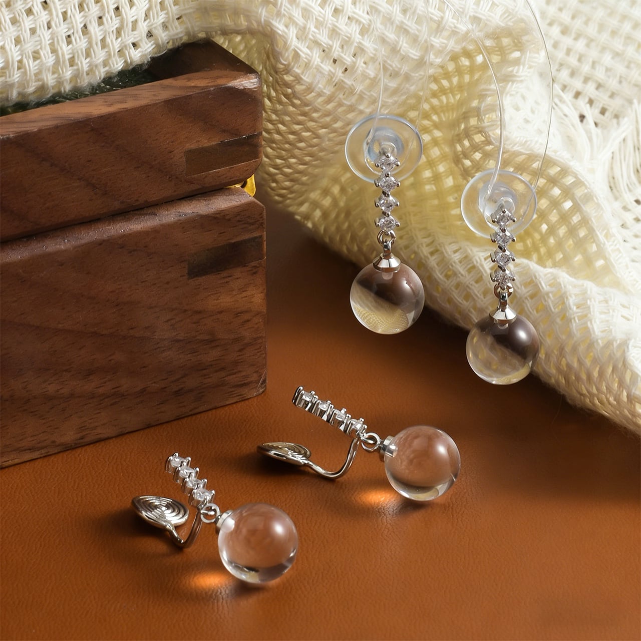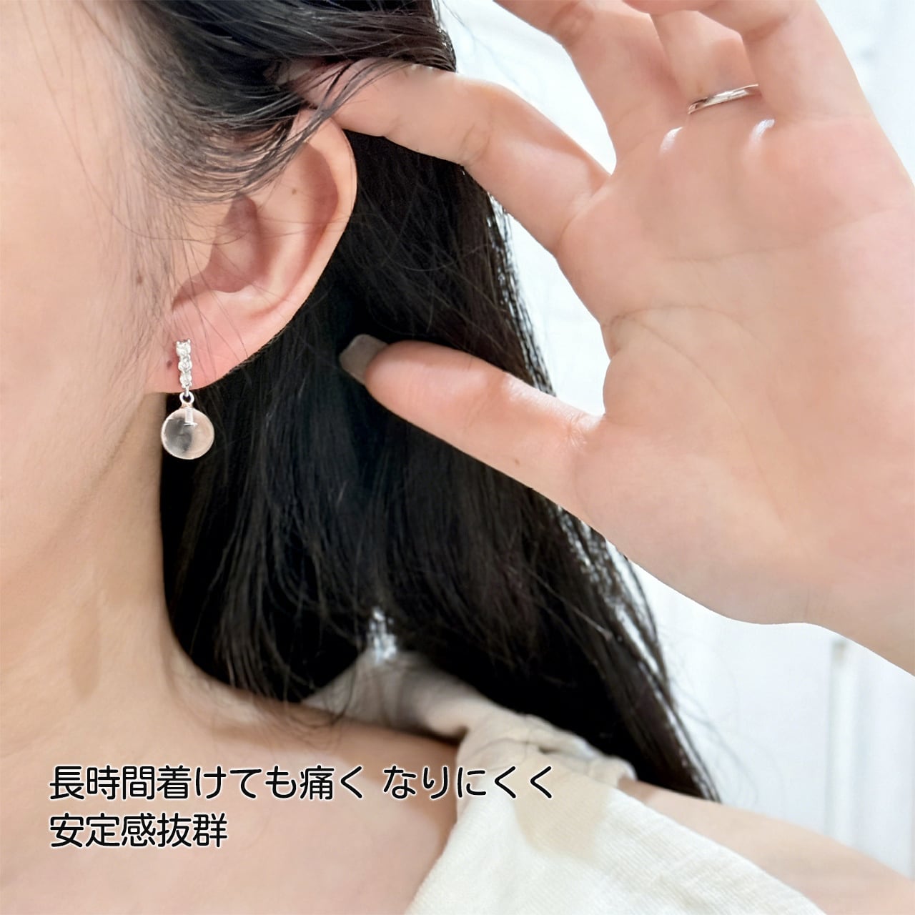 P15 .ノンホール用 シルバードロップガラスイヤークリップ レディース 上品・オシャレ・コーデ万能 一体型蚊香型イヤークリップ
