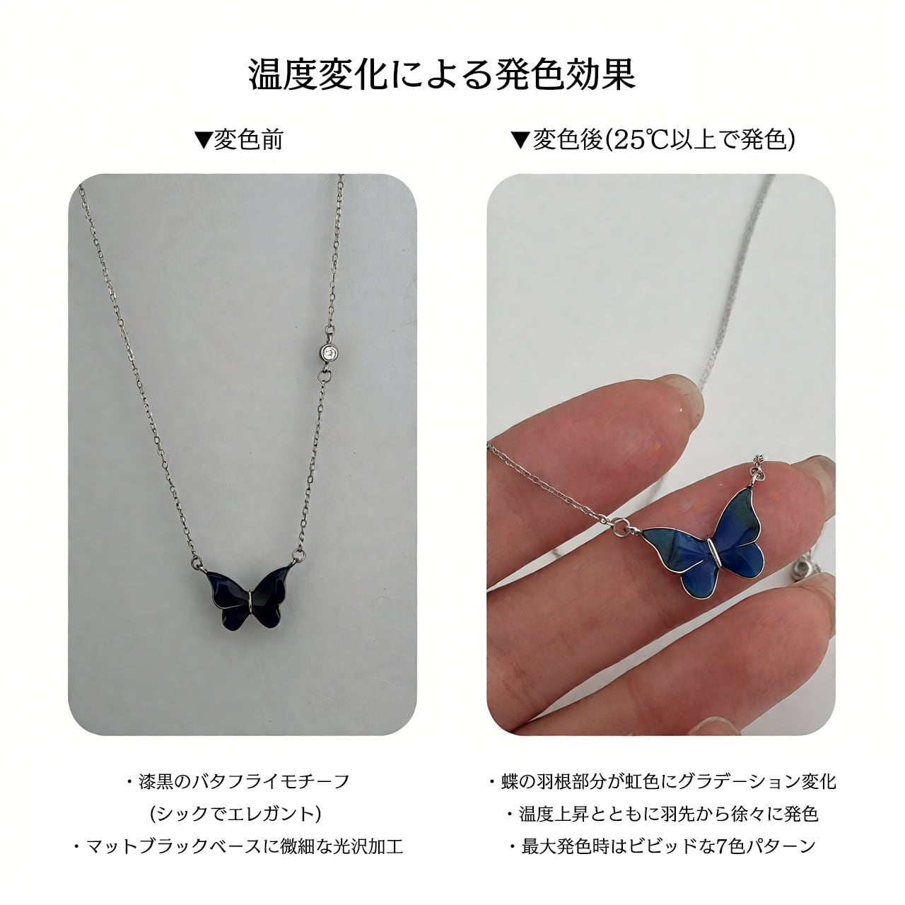 Z173 .体温で色が変わる魔法の蝶 バタフライネックレス 総925シルバー製 アレルギー対策済み