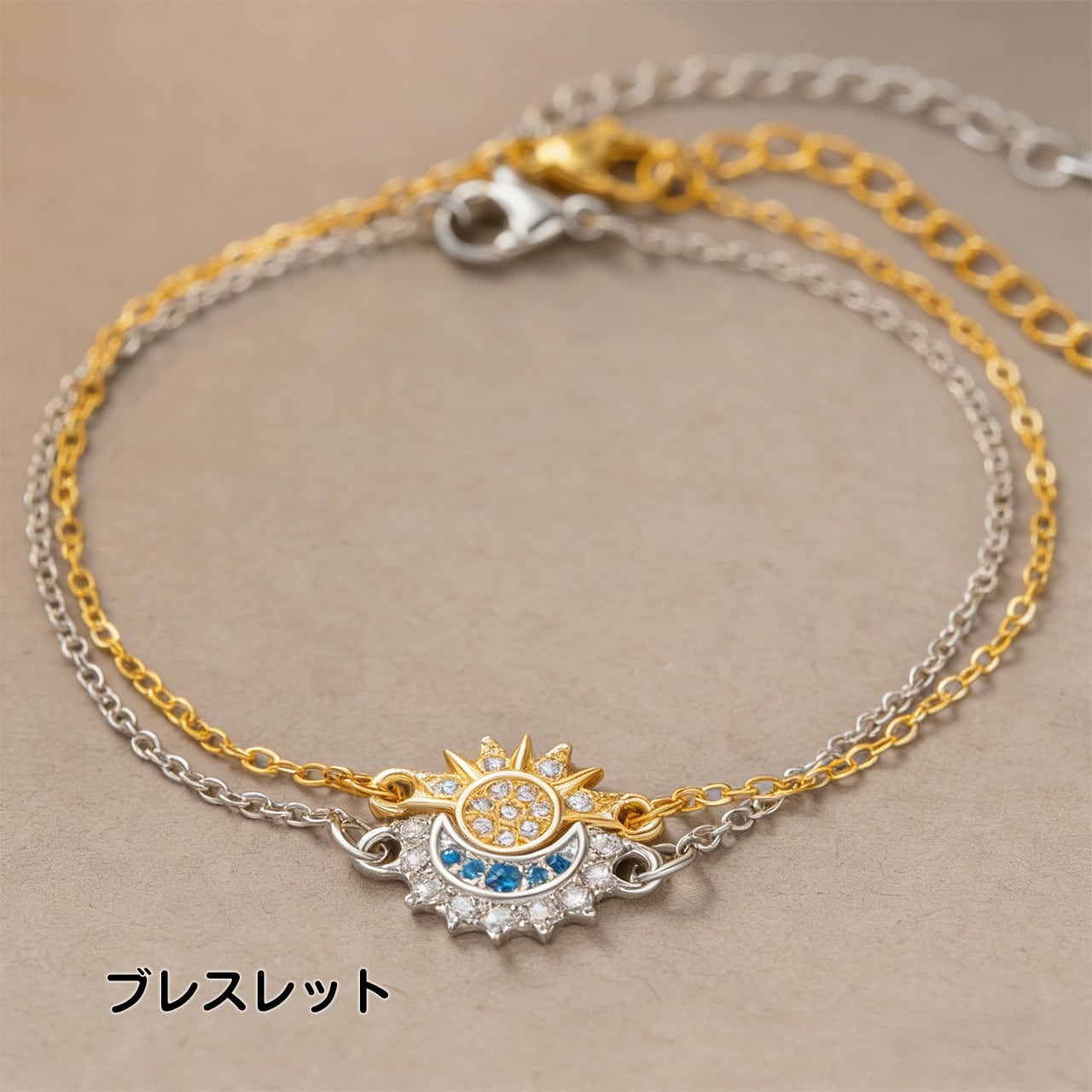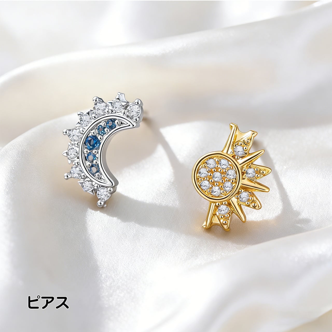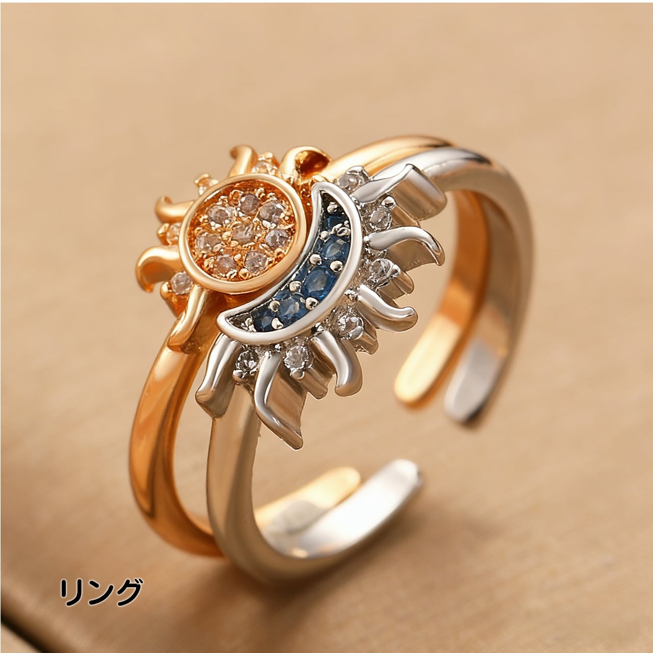 P18 .個性的レトロデザイン 日と月が輝く 重ね付け レディース キュービックジルコニア入り 太陽・月モチーフ オープンリング ネックレス ピアス ブレスレット
