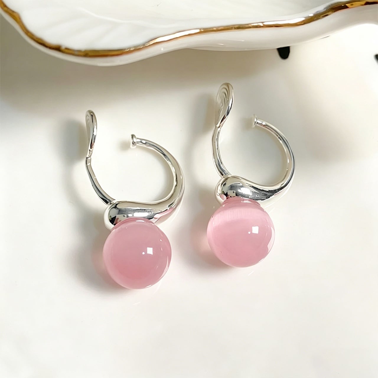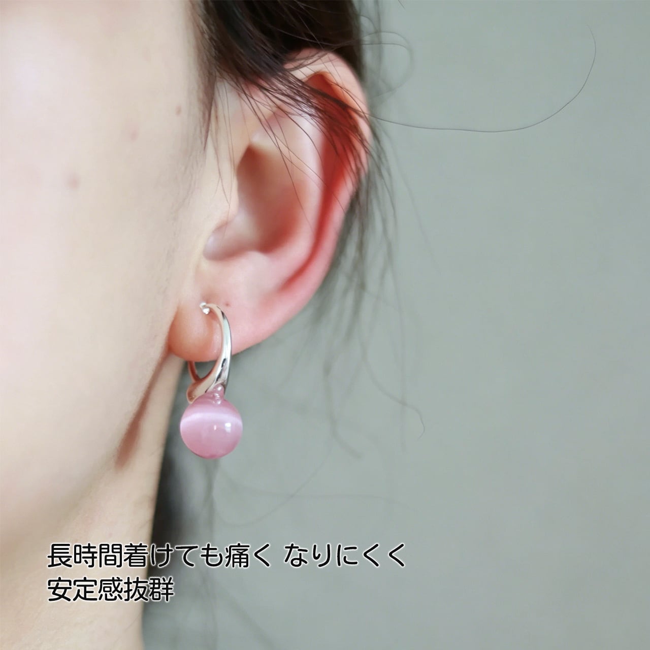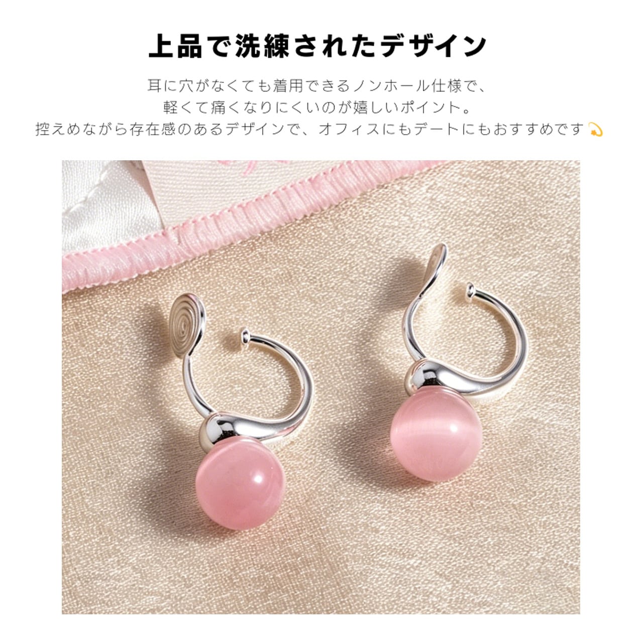 P22 .「ピンクミストキャッツアイ」甘めキャッツアイイヤークリップ 女性向け 文芸風シルバー ラグジュアリー感 ノンホール 新作