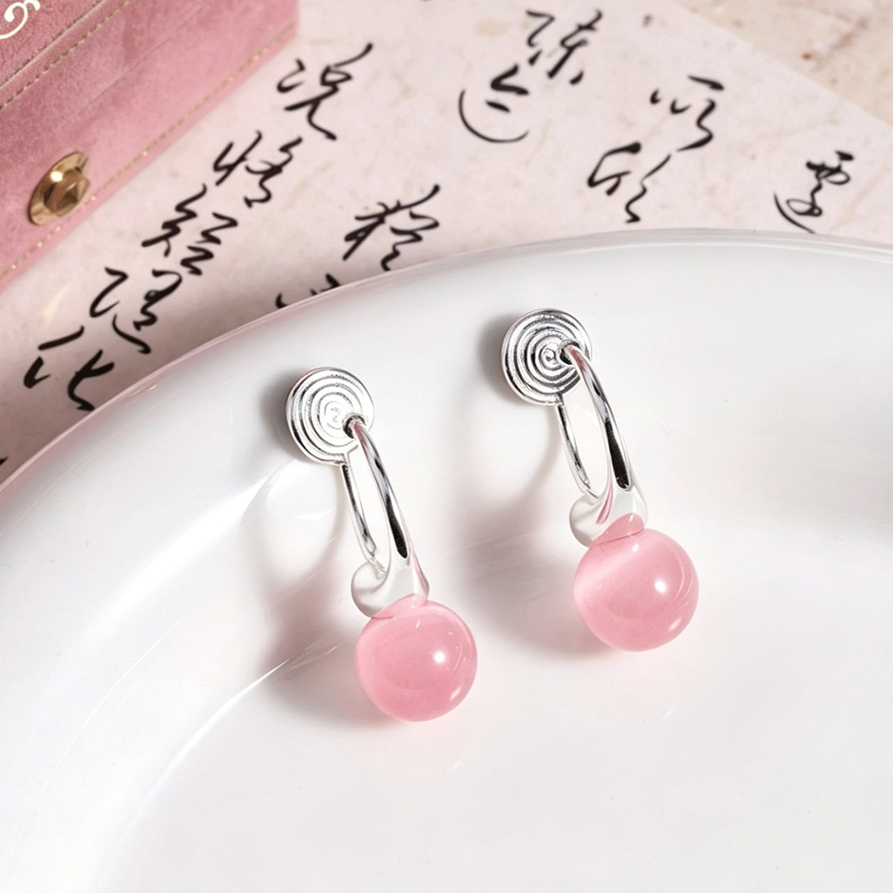 🌸「ピンクミストキャッツアイ」甘めキャッツアイイヤークリップ