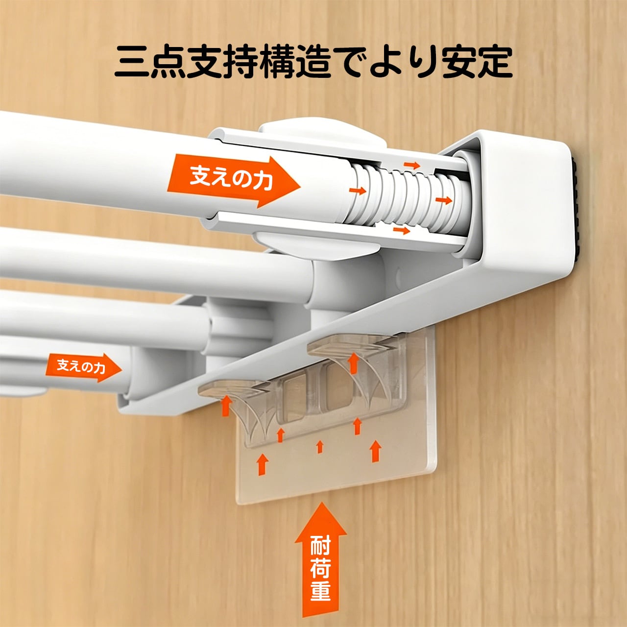 棚板の滑り落ちやクローゼットの変形を防止。頑丈な炭素鋼フック式で重い衣類や小物も安心収納。