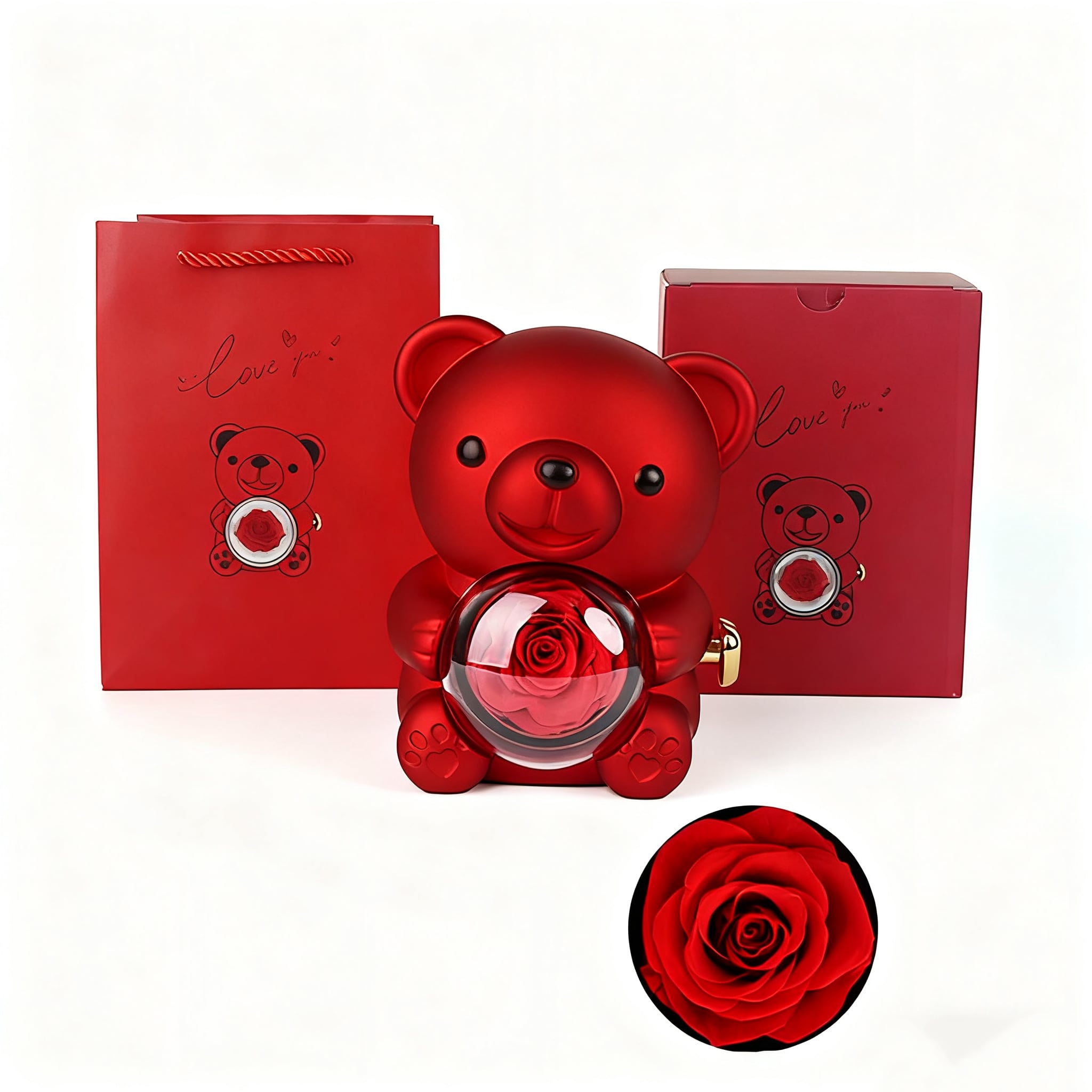 B1-Z.回転ベアが叶える永遠の贈り物|隠しネックレス&指輪付きプリザーブドフラワーボックス【ネックレスはアレルギー防止の金属を使用】