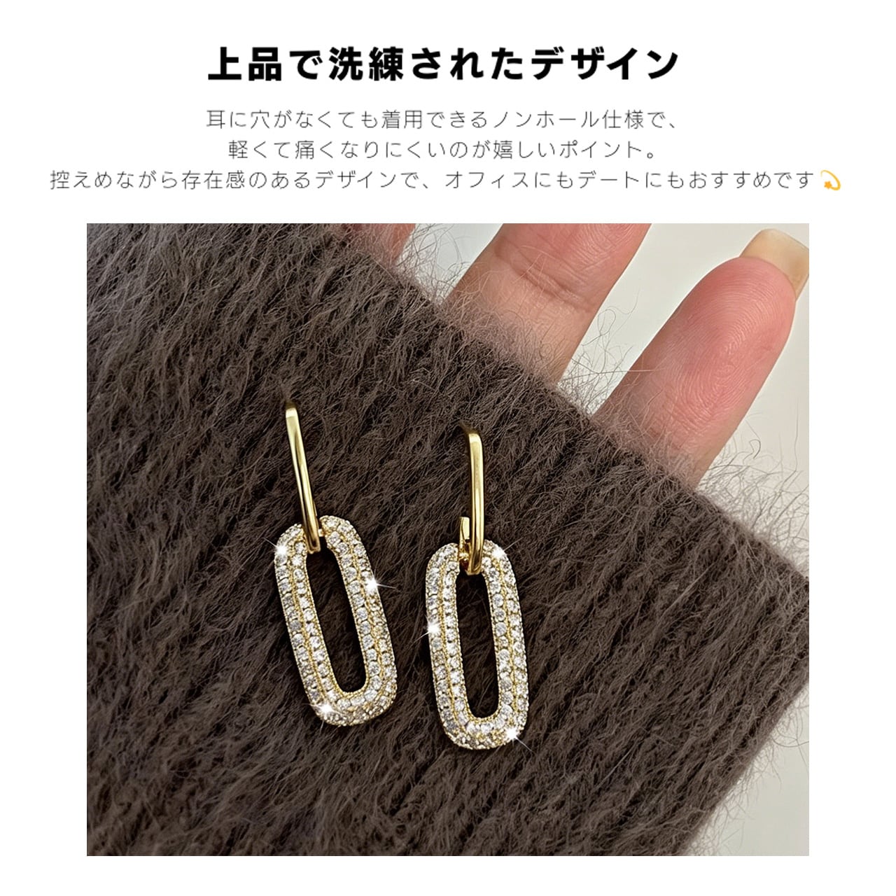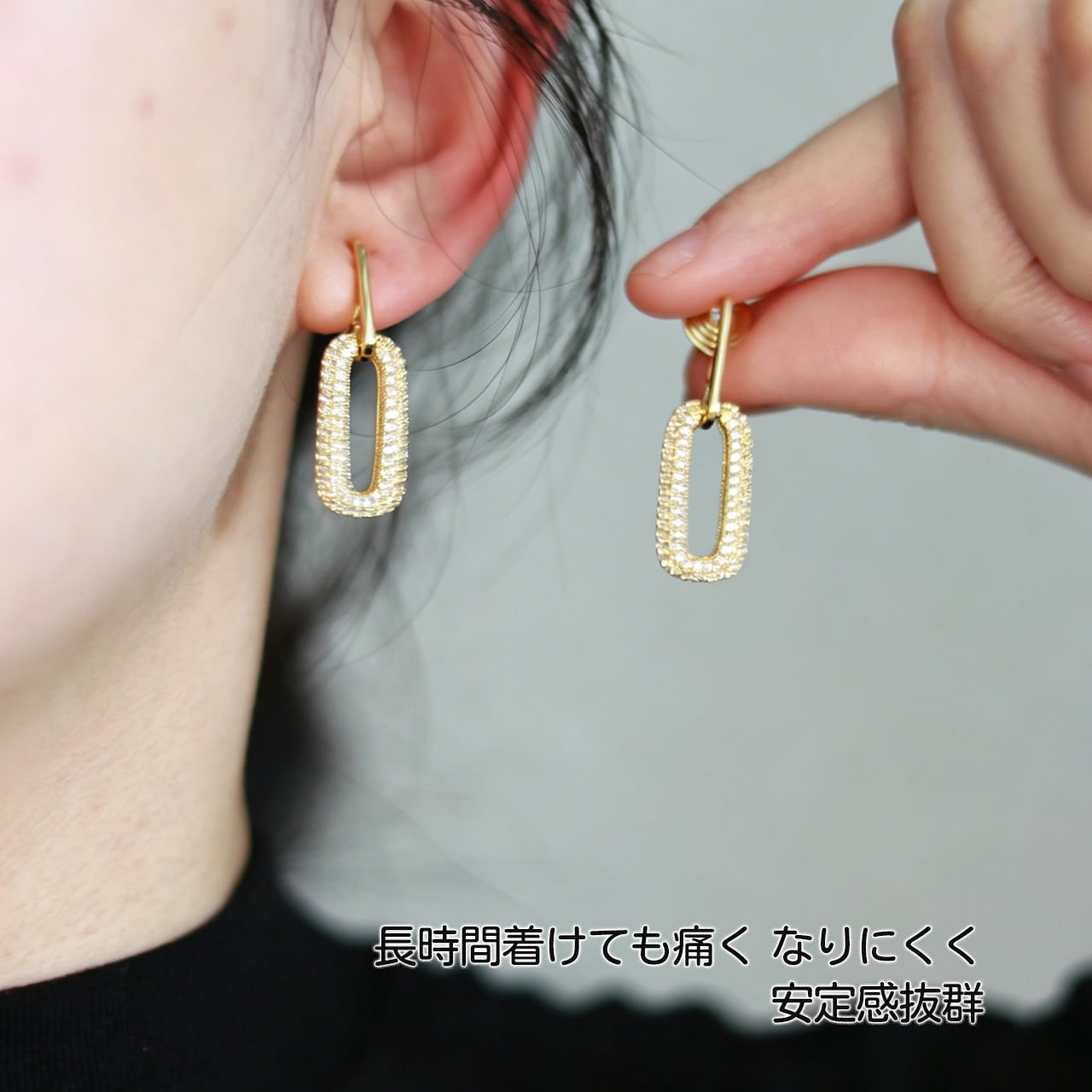 ピアス穴がなくてもOK。イヤーカフ仕様で耳に挟むだけの簡単装着。