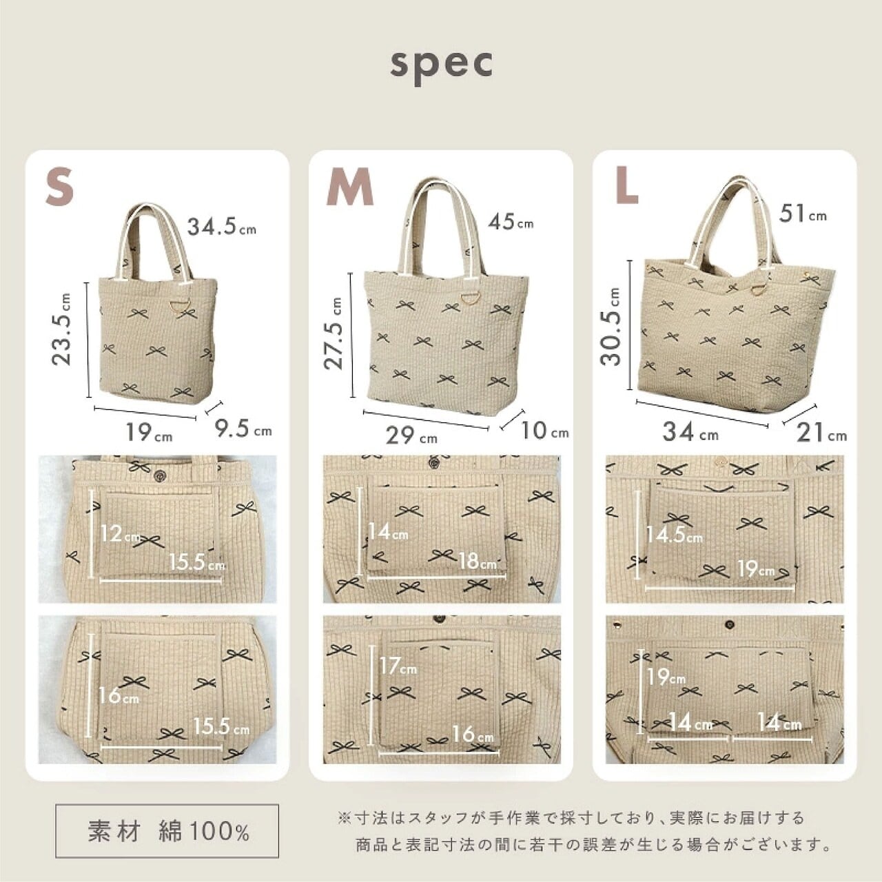 サイズ:縦31cmx横34cmxマチ21cm