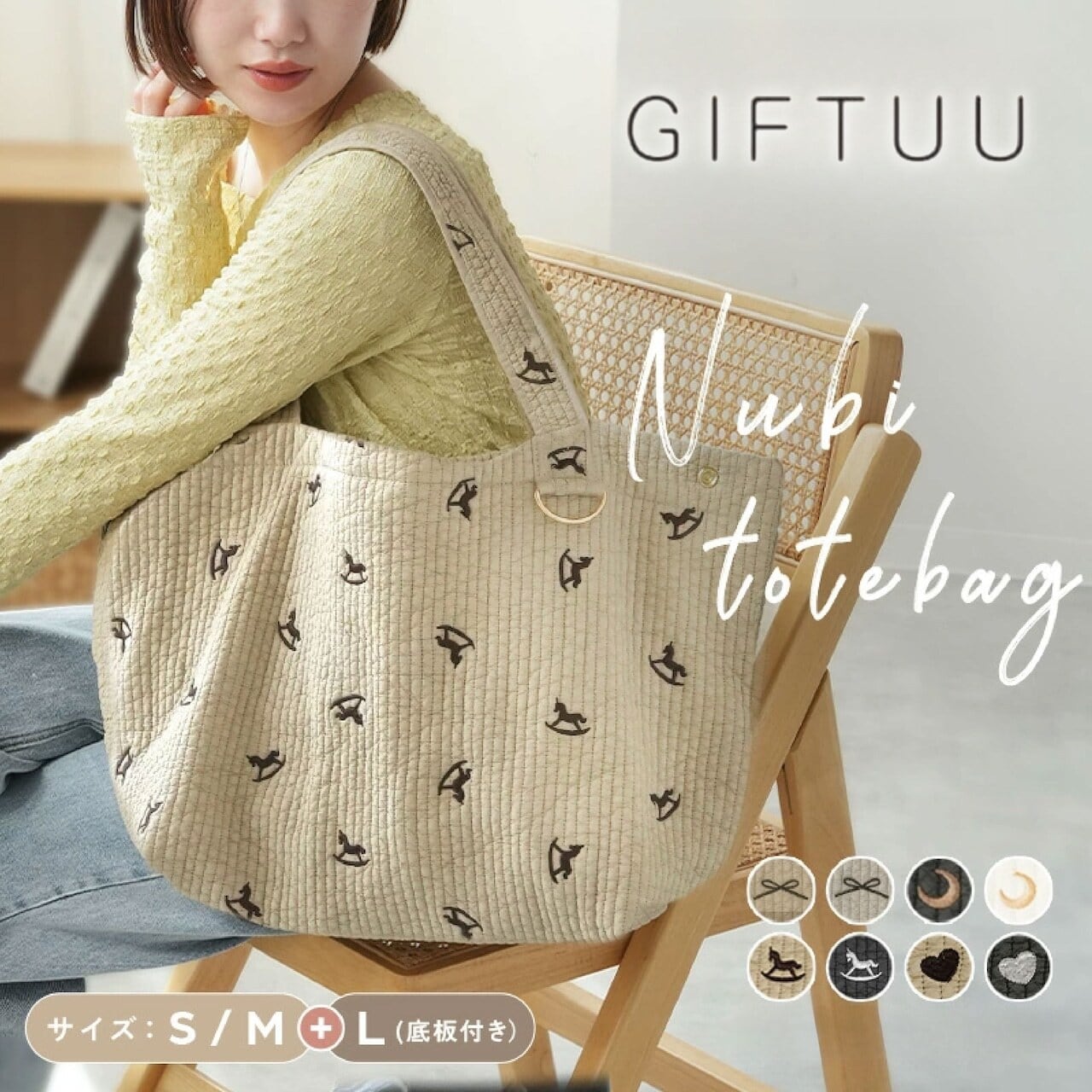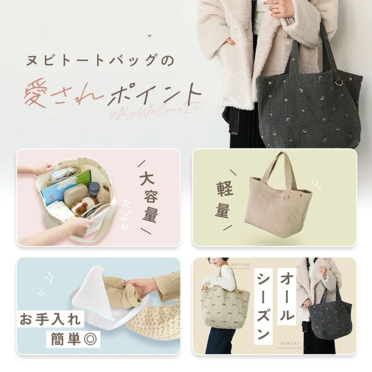 Y405-YX . 【刺繍モデルの注文リンク】マザーズバッグ ヌビバッグ トート 洗える 底板付き バッグ 軽量 大容量 Dカン付き おしゃれ トートバッグ レディース ショルダー 小さめ 大きめ ヌビトートバッグ 出産祝い A4 ヌビ 韓国 刺繍 S M L