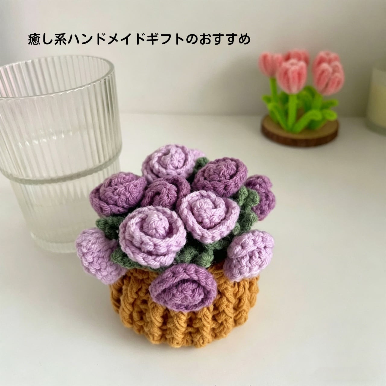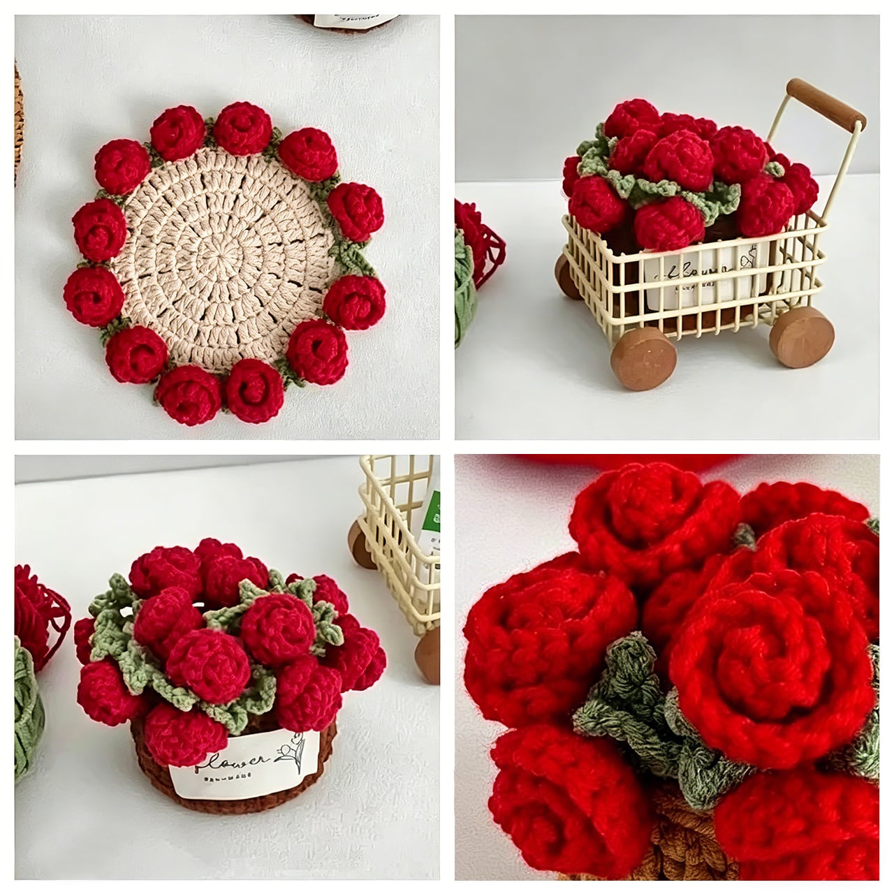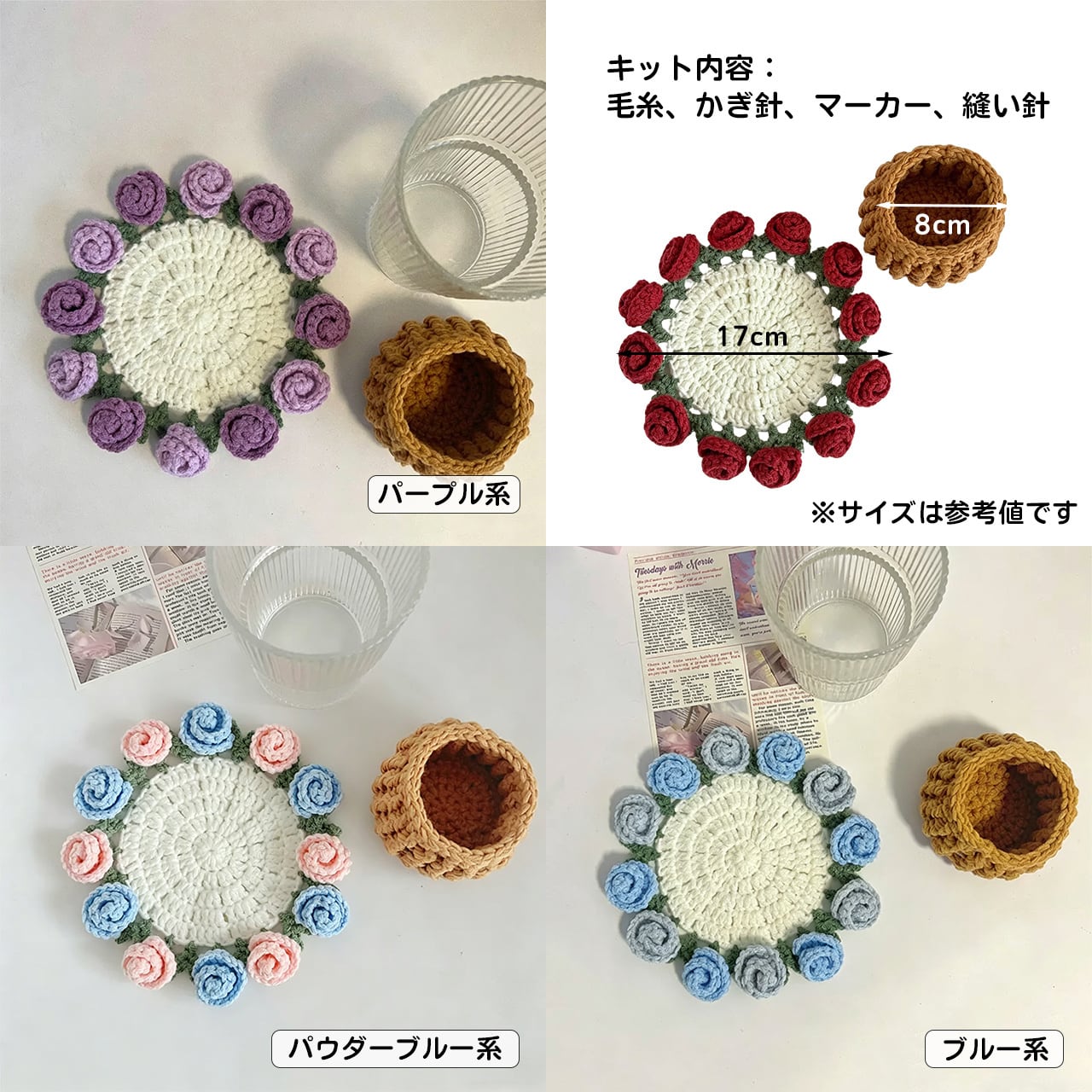 Z14 .手編み DIY キット ミニローズ ブーケ コースター 鉢植え かぎ針 毛糸 女の子向け 創作ギフト