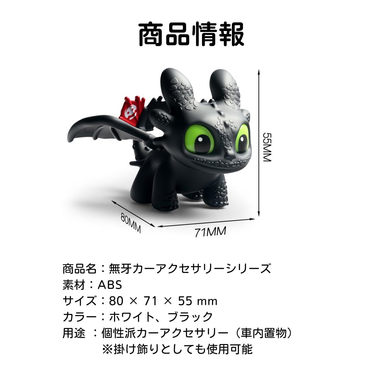 Z15 .ナイトフューリー(ヒックとドラゴン)光るトゥースカーアクセサリー|車内インテリア・電動バイク用置物&ハンギング飾り