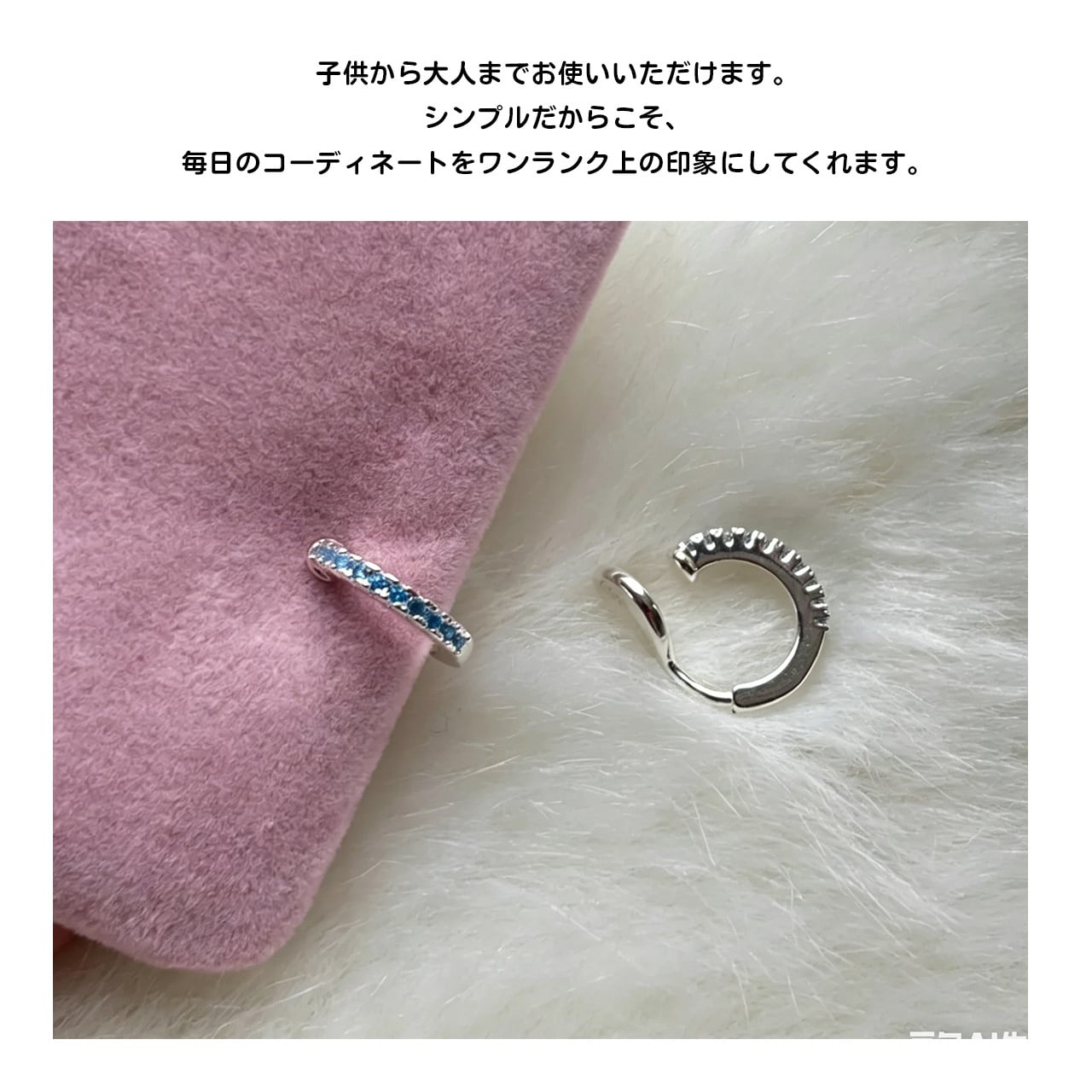 他のイヤリングやピアスとの重ね付けにも最適で、オリジナルコーデが可能。