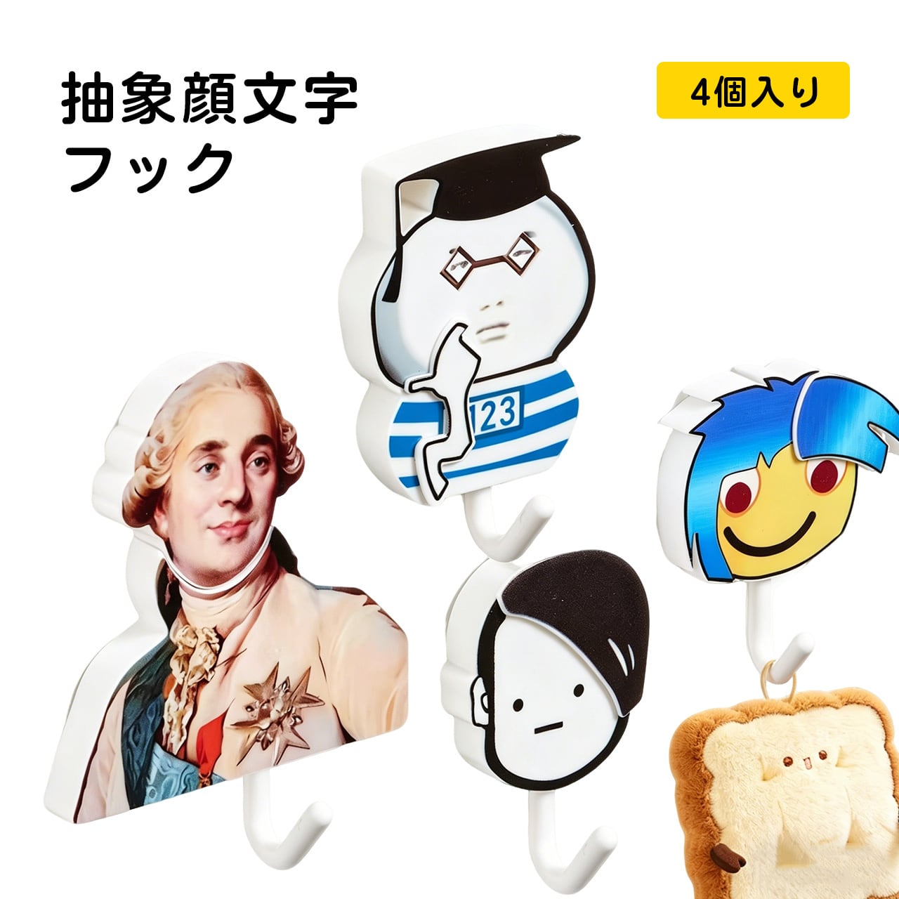 抽象アート動くフック 4個セット | 個性的でユニークな絵文字風掛けフック
