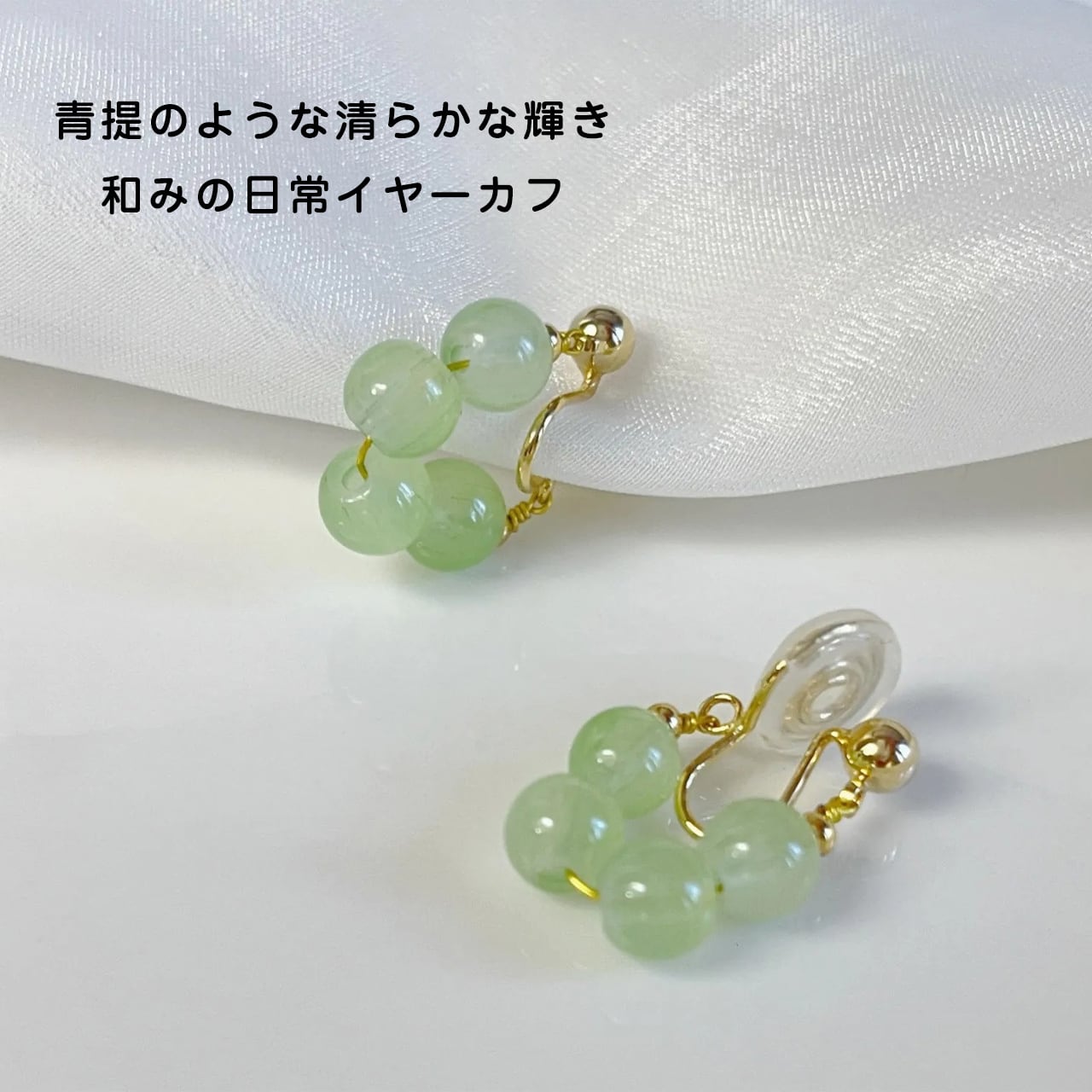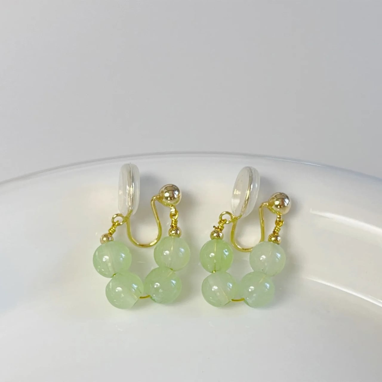 清潔感のあるグリーンビーズが可愛い、和田玉風のイヤリングです。ピアス穴がなくても使えるので、誰でも気軽に楽しめます。日常使いからギフトまで、上品で柔らかい雰囲気が魅力です。