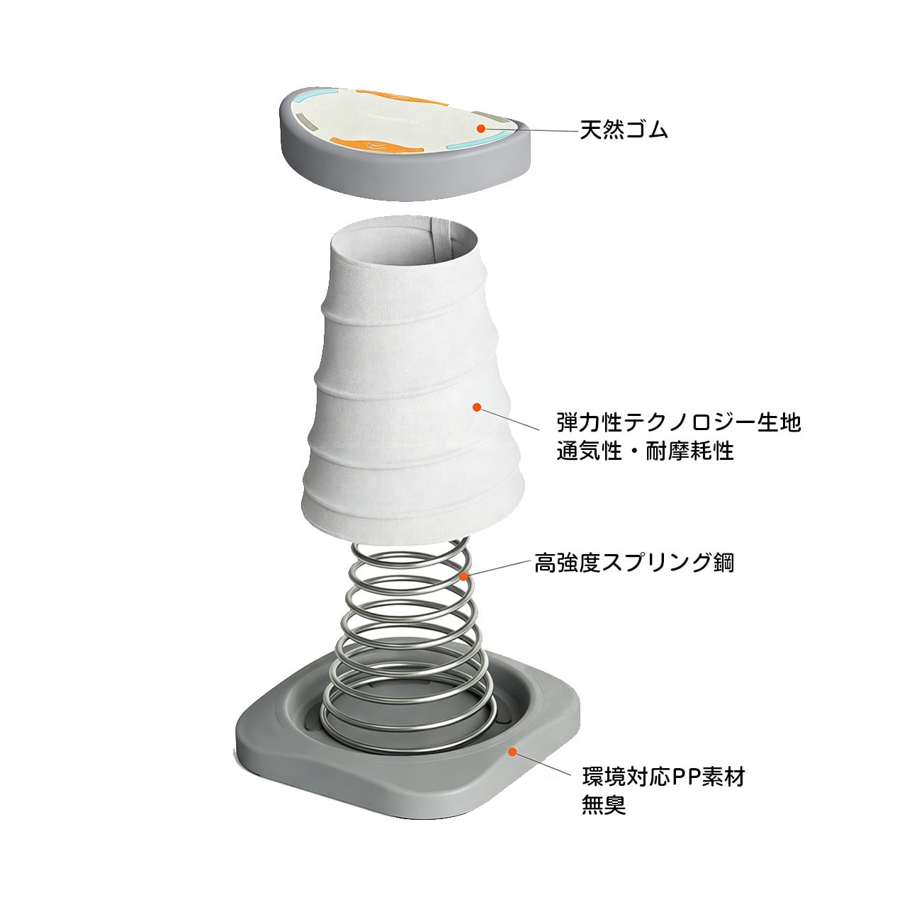 高強度スプリング鋼と環境対応PP素材で耐久性抜群