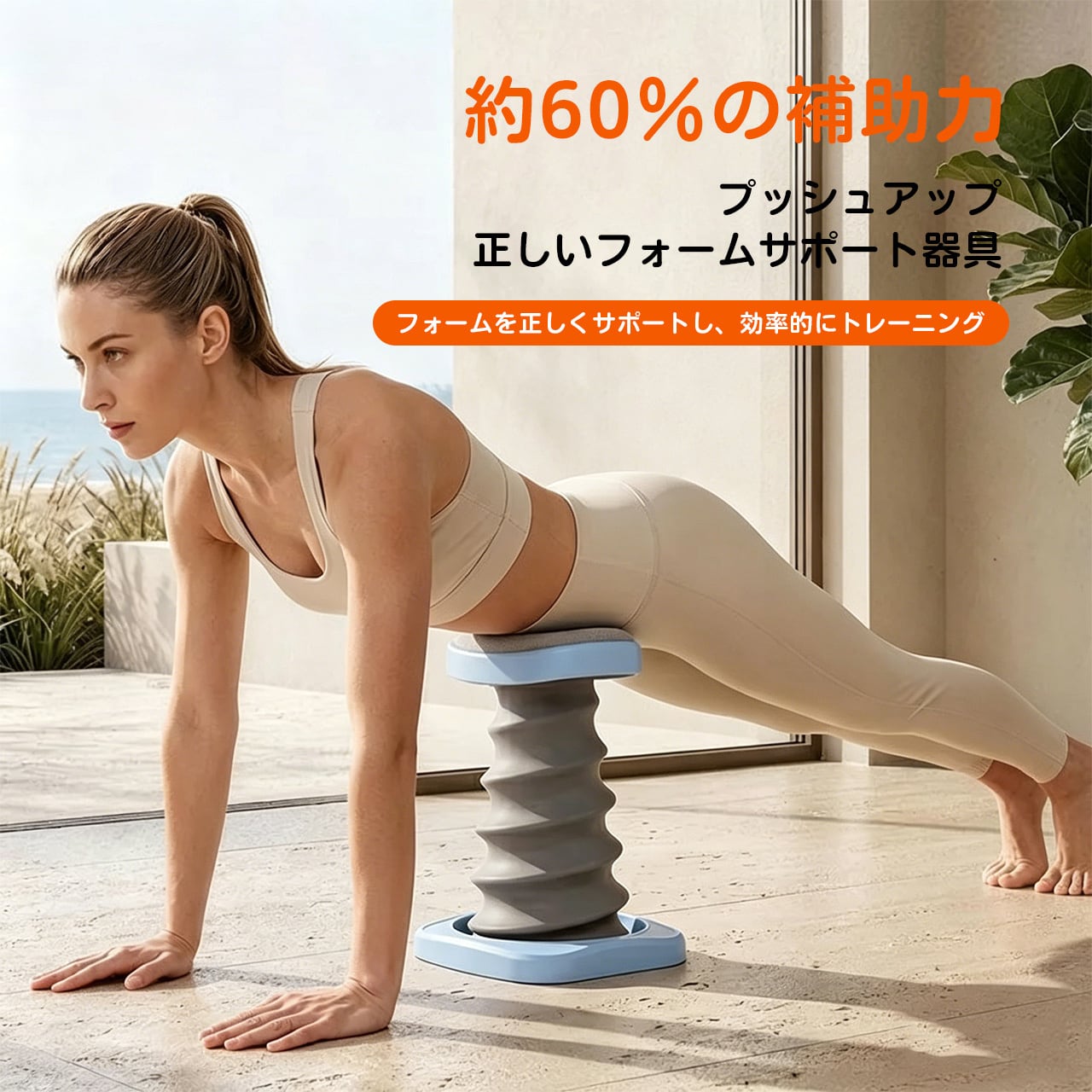 初心者でも約60%の補助力で、正しいフォームを維持しながらプッシュアップを行えます。