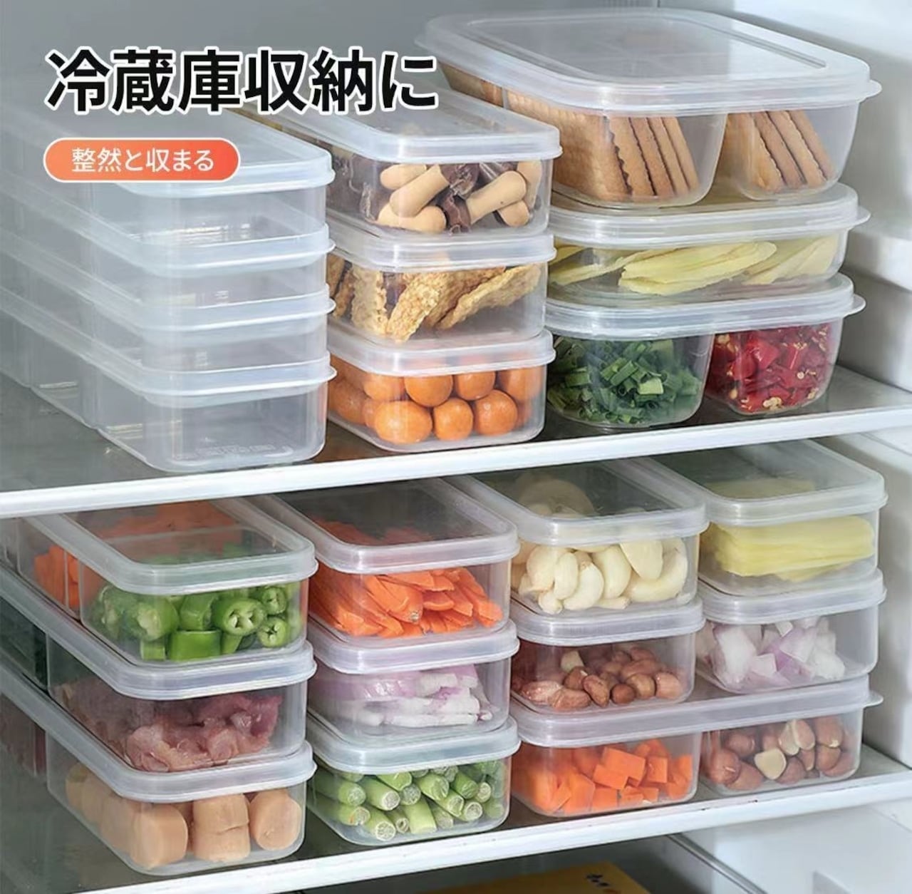 冷蔵庫や冷凍庫でスペース効率アップ。複数個並べてすっきり収納。