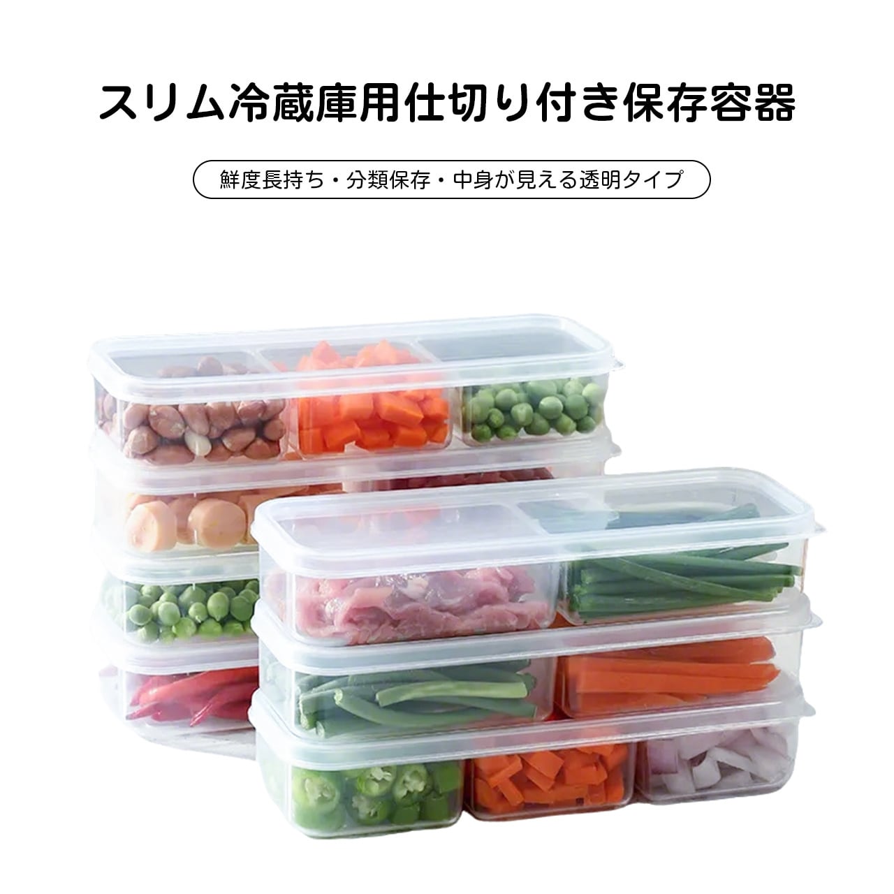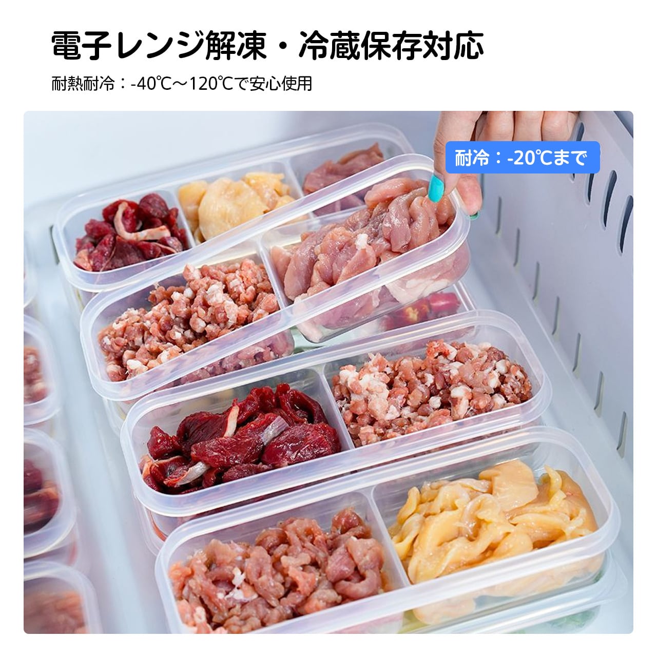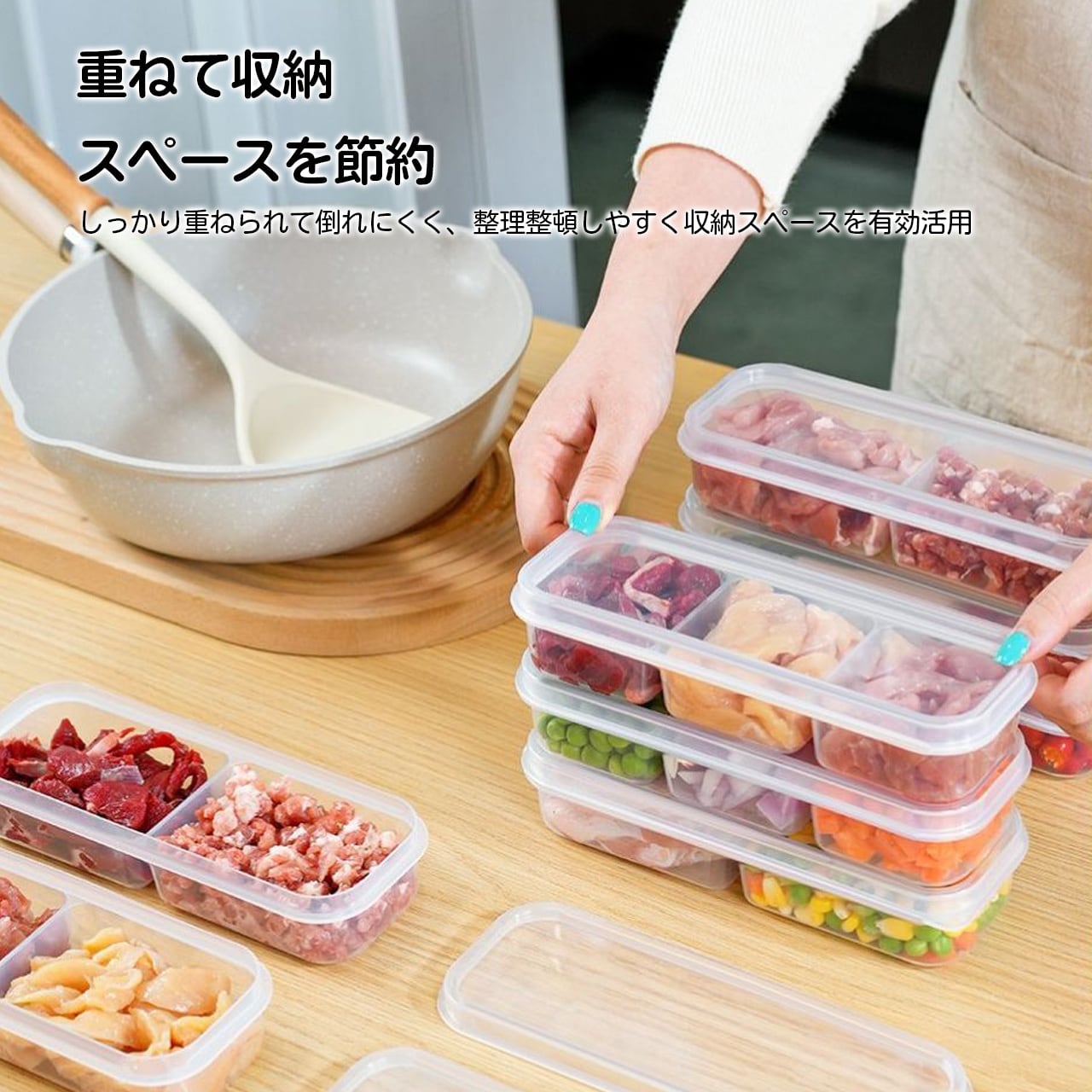 2格・3格など分格タイプがあり、肉や食材を種類ごとに分けて保存可能。