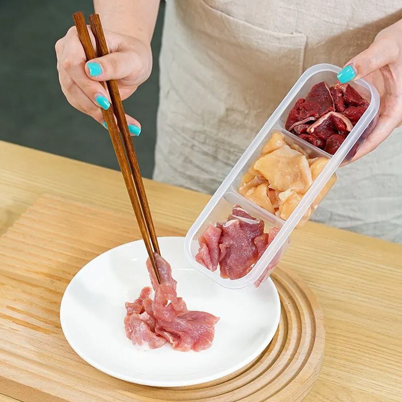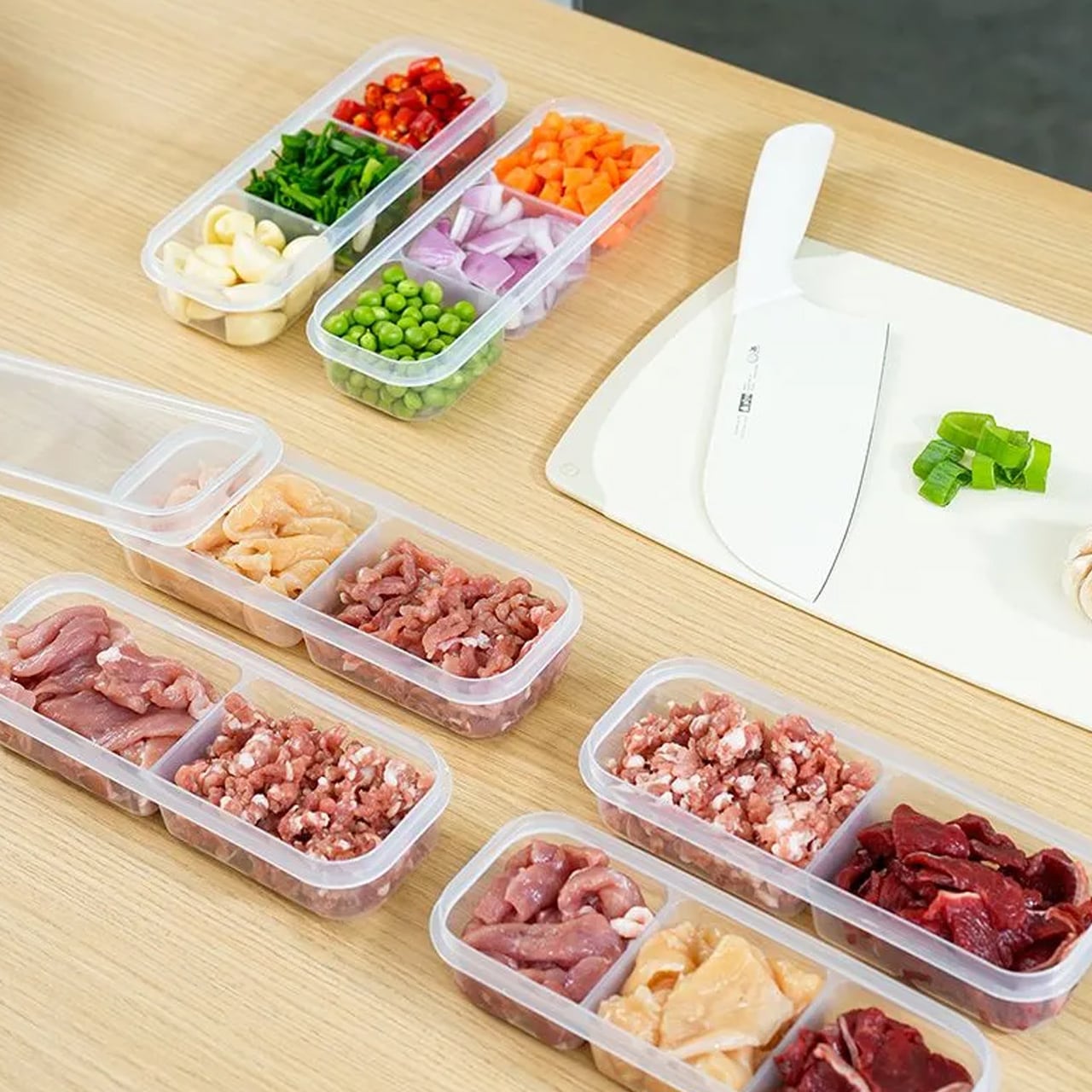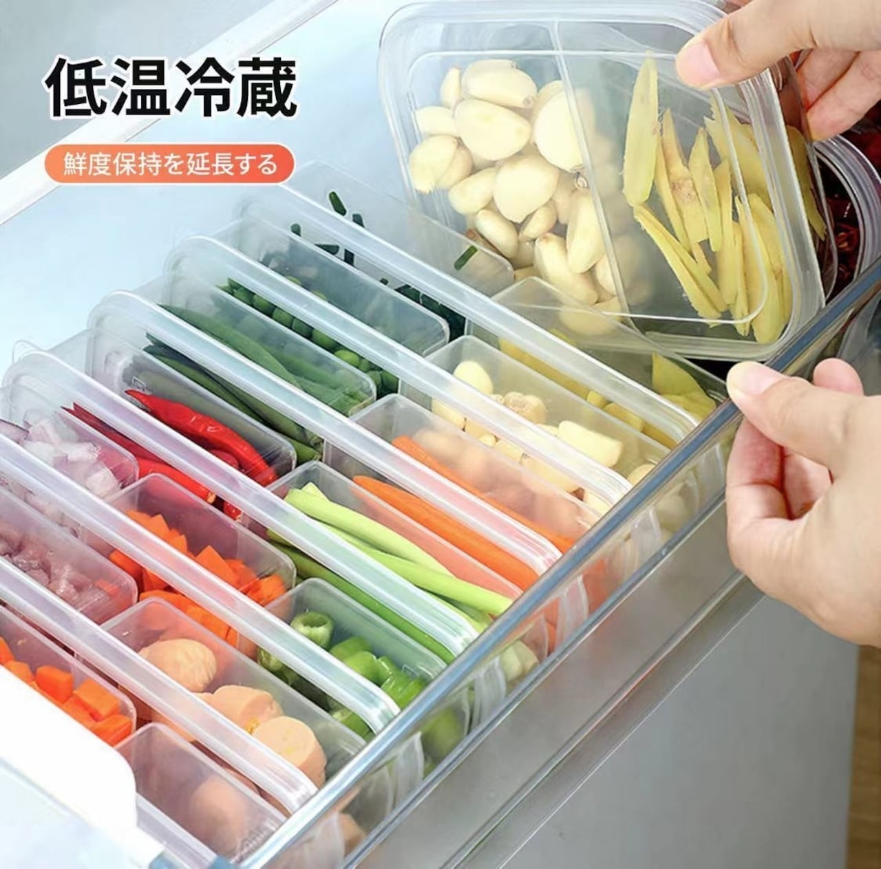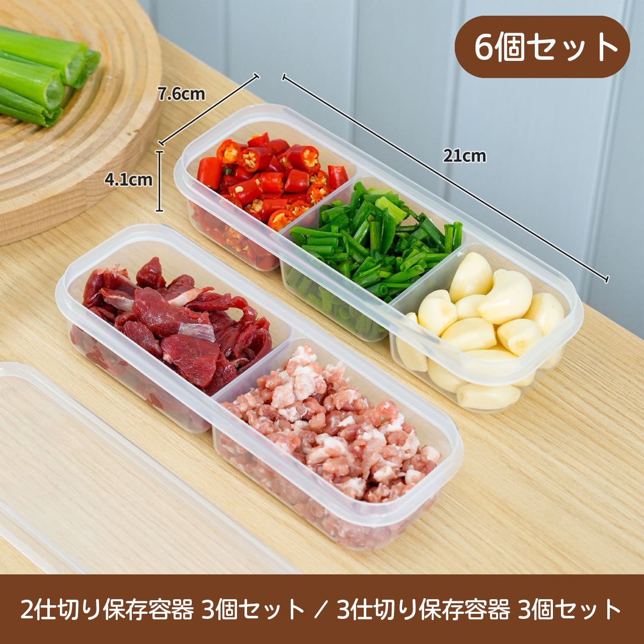 2格・3格など分格タイプがあり、肉や食材を種類ごとに分けて保存可能。