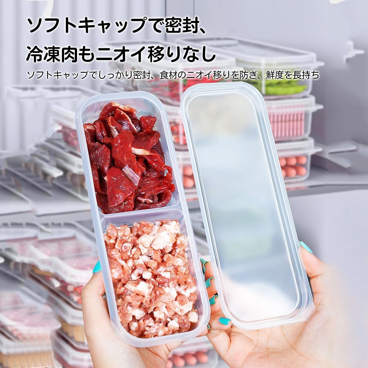 J54 .冷凍庫用収納ボックス|肉用・密閉・仕切り付き|食品級・抗菌・鮮度保持・保存容器