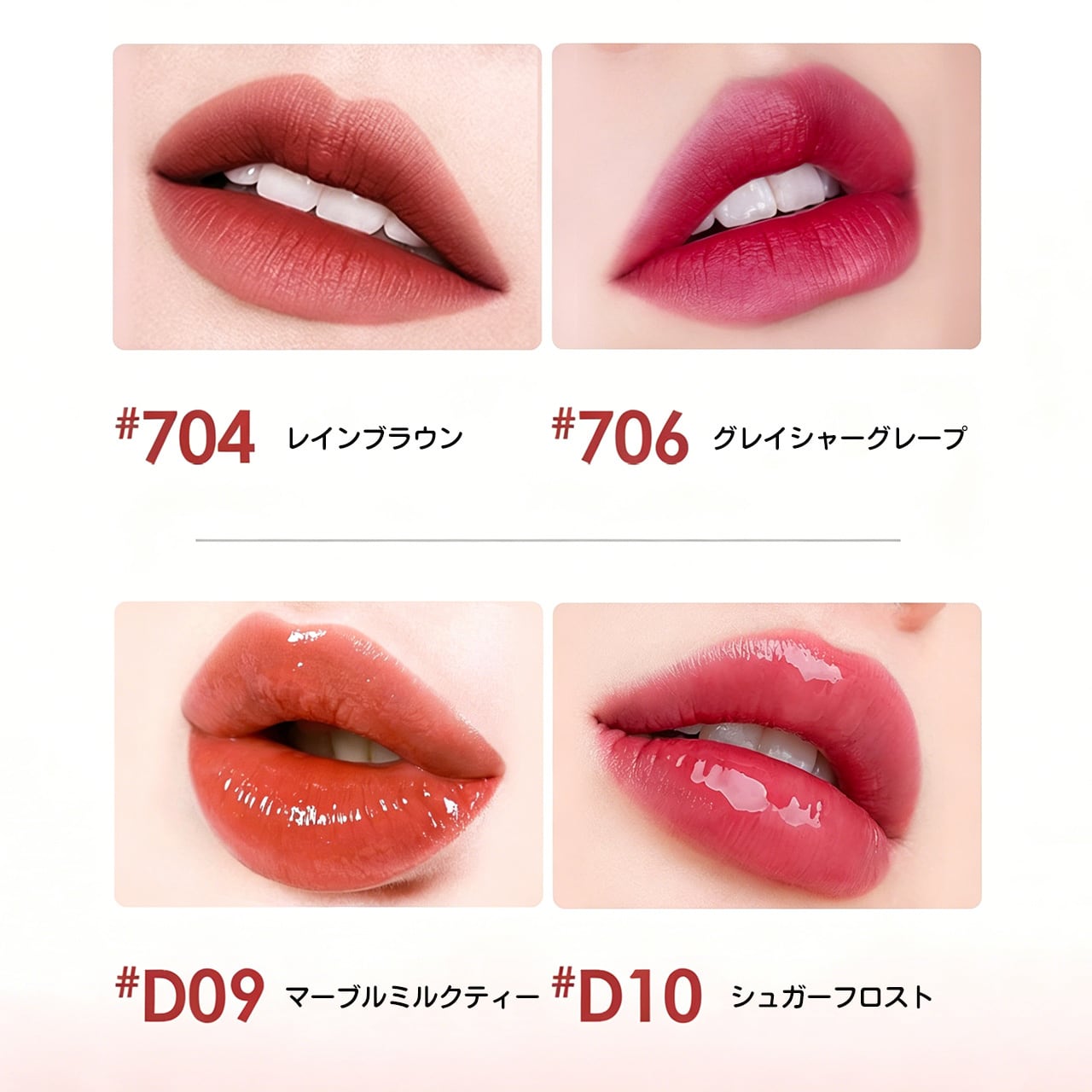 エッセンス入りリップ、ウォーターミストリップグロス、クッションCCクリームなど、肌への優しさに配慮した成分設計。