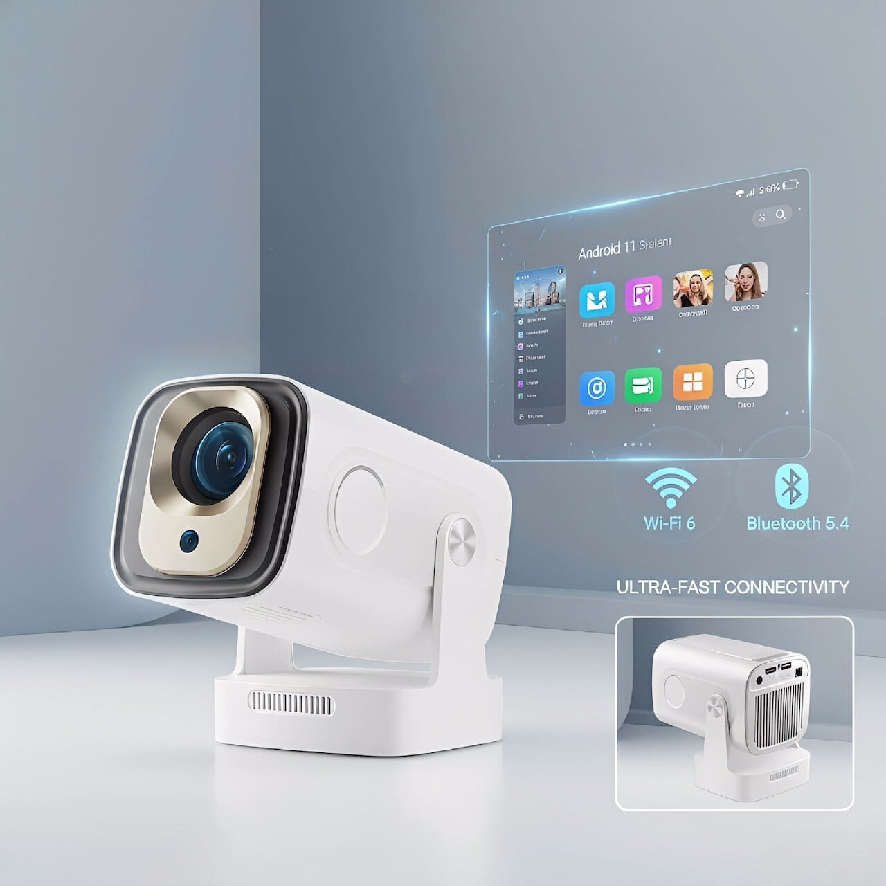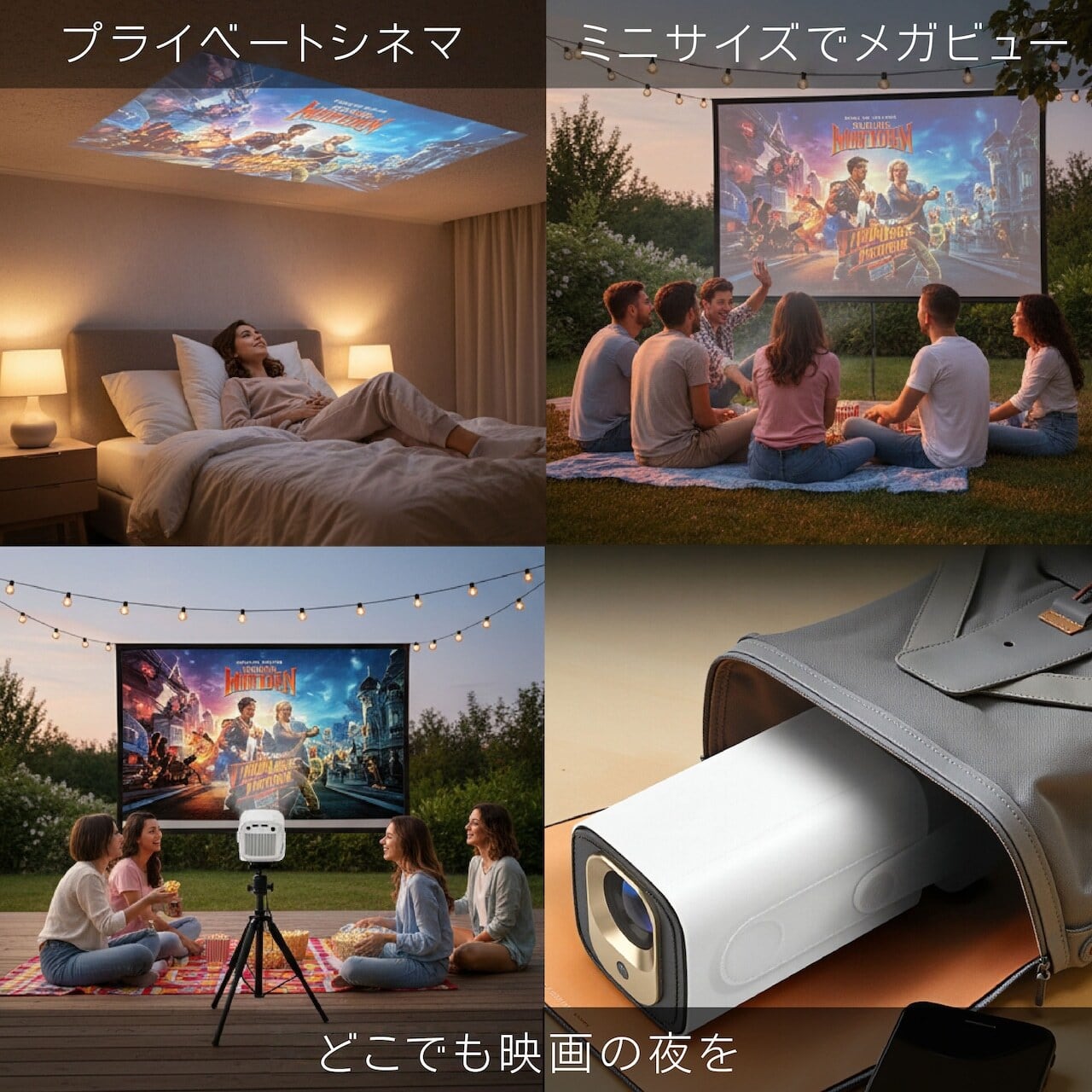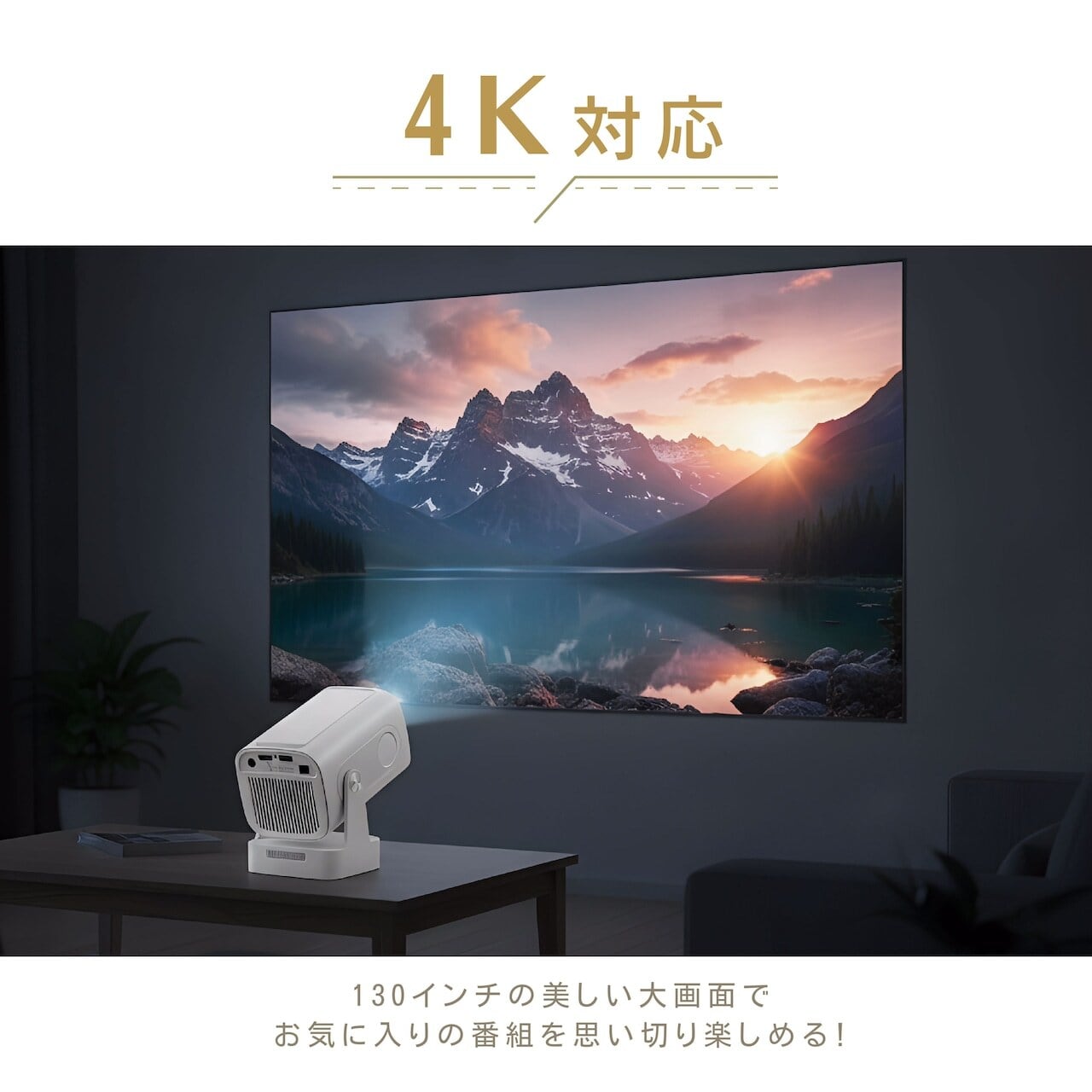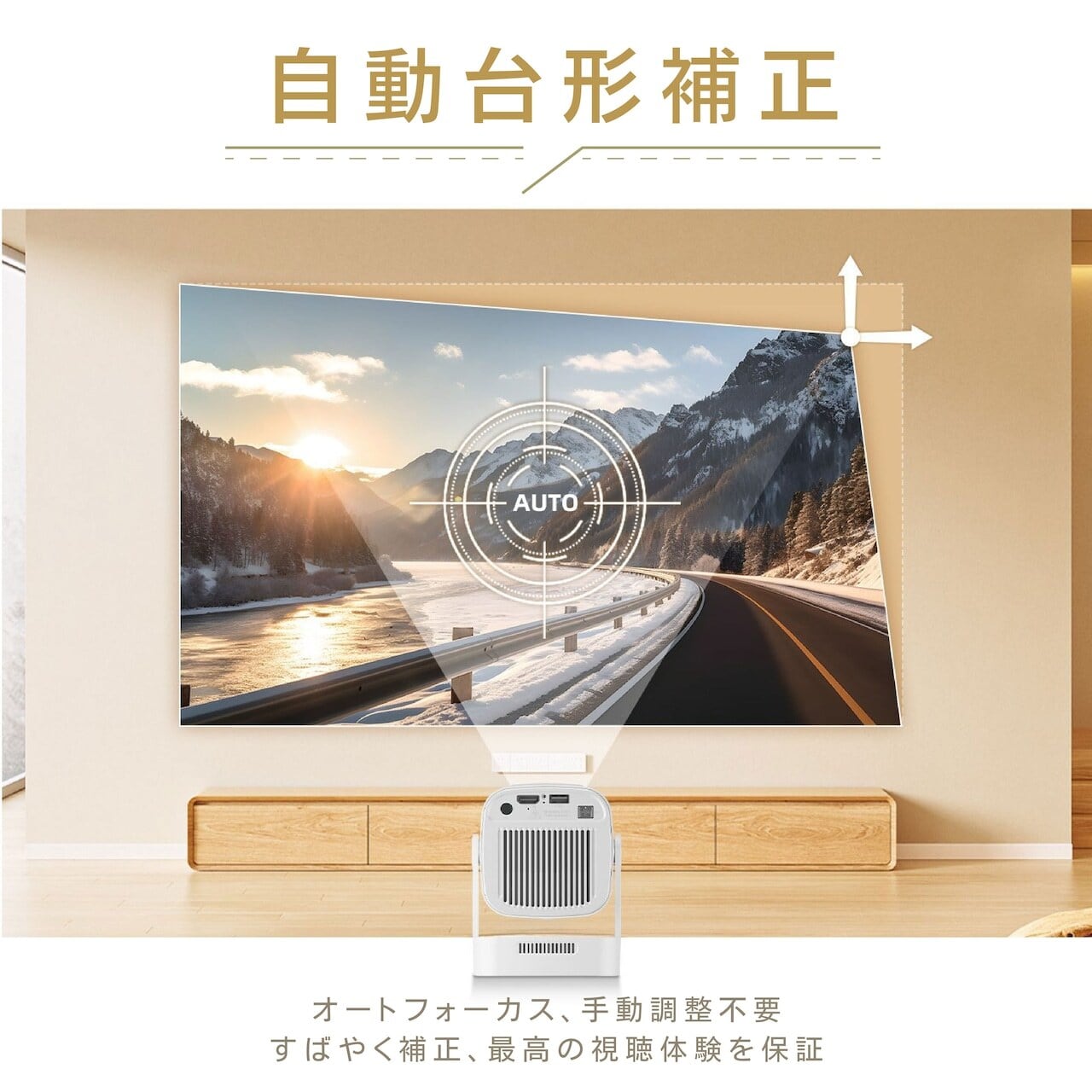 オートフォーカスや自動台形補正など、初心者でも簡単に使える機能が充実。Wi-Fi 6・Bluetooth 5.4・Android 11搭載で、ネット動画もミラーリングもスムーズ。寝室はもちろん、キャンプや旅行にも持ち運べるスマートプロジェクターです。