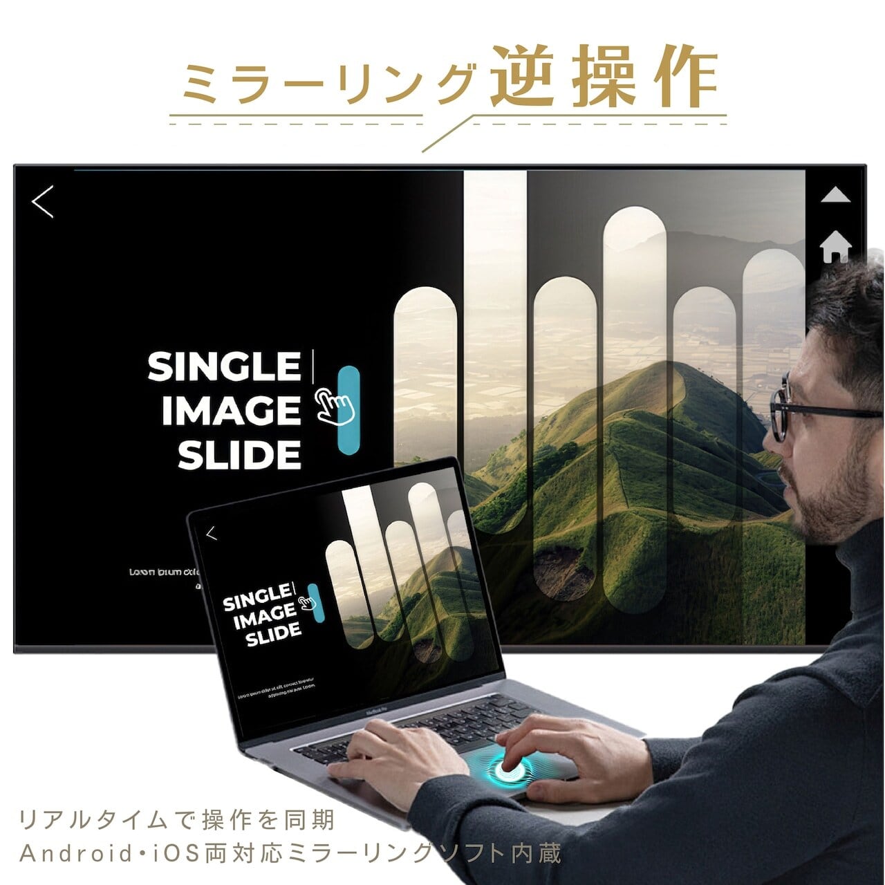 スマホの画面を投影しながら、プロジェクター側からも操作可能。Android・iOS両対応。